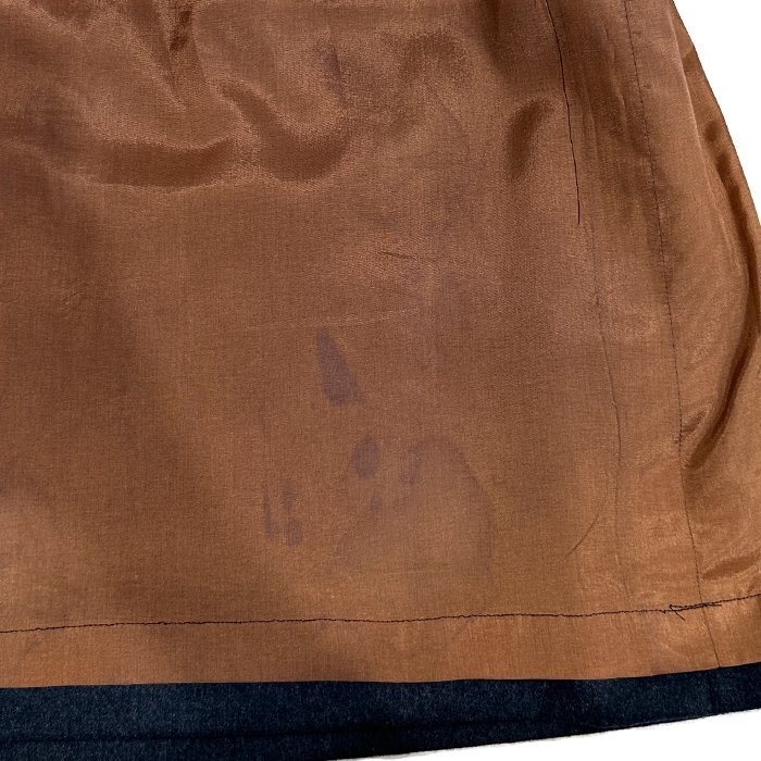 | 状態 | ・表地は多少の毛羽立ち等ございますが、比較的綺麗な状態です。 ・裏地には全体的に大小のシミ汚れ等がございます。 ・バックル、ベルトレザー部分には多少の小傷がございます。 | ||