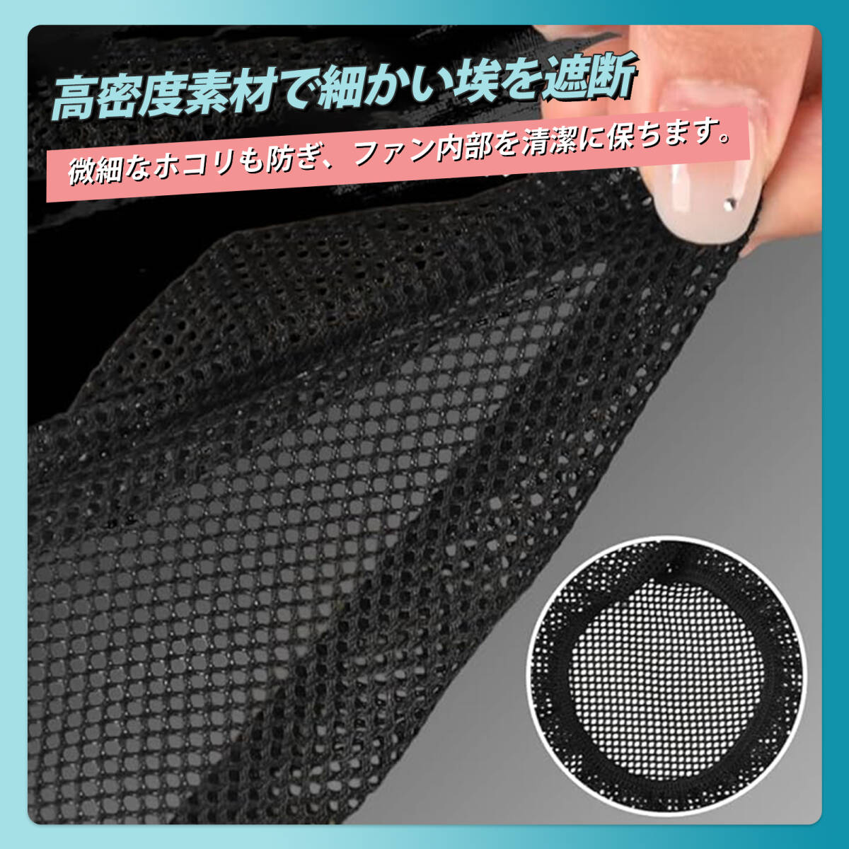 | この商品について | 【強力な防塵効果】:高品質ポリエステル繊維を採用し、ほこり・毛髪・小さな異物の侵入をしっかりガード。ファンの詰まりを防ぎ、風量を安定させます。 【風を妨げない通気性】:メッシュ構造で空気の流れを遮らず、涼しさをそのままキープ。快適な送風を妨げません。 【軽量&柔らか素材】:軽くて柔らかいため装着しても負担にならず、長時間の着用にも最適。作業現場やアウトドアでも快適に使用できます。 【簡単取り付け】:ステップはたった3つ:①カバーを用意 ②ファン外カバーに装着 ③ファンを組み立てるだけ。誰でも手軽にセット可能。 【幅広い使用シーン】:建設現場・農作業・アウトドア活動など、汗をかく夏の現場で大活躍。空調服の寿命を延ばし、いつでも清潔な風を楽しめます。 |