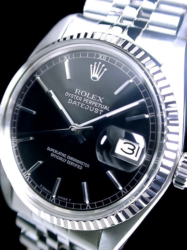 ・ 商品名 ★超美品 ROLEX ロレックス 18金WGフルーテッド ブラック Ref.16014 Cal.3035 デイトジャスト オイスターパーペチュアル 綺麗★ | ||