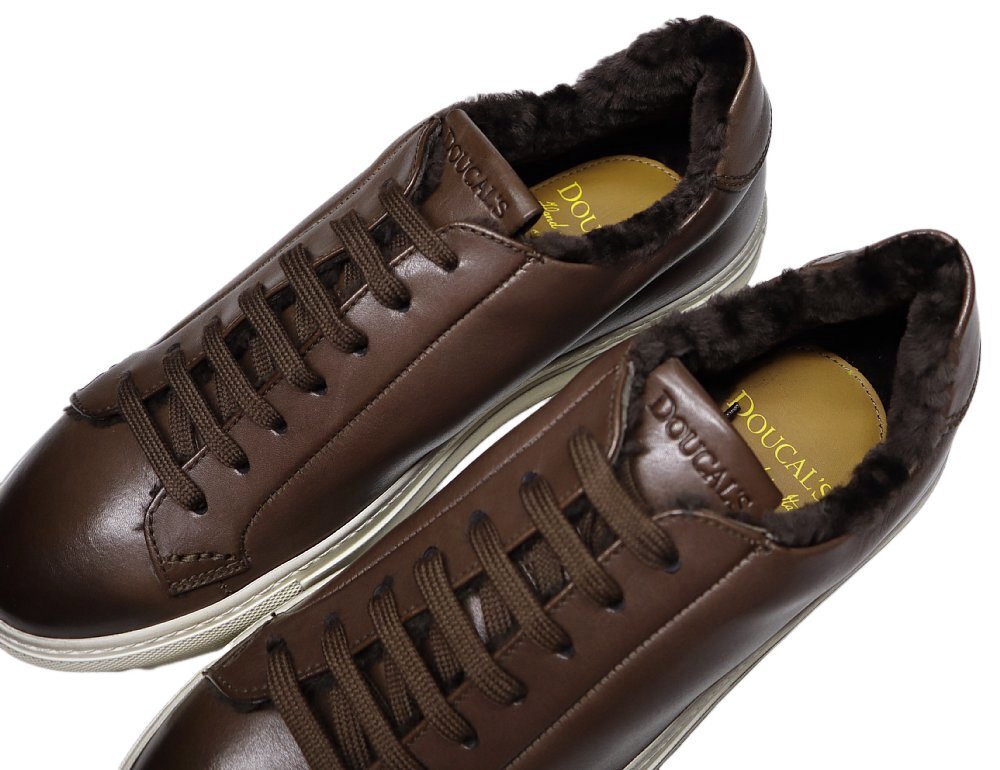 リッチで暖かく、洒脱な冬のレザースニーカー!【 DOUCAL'S / デュカルス (伊 】アンティーク濃茶のファー付き ドレススニーカー