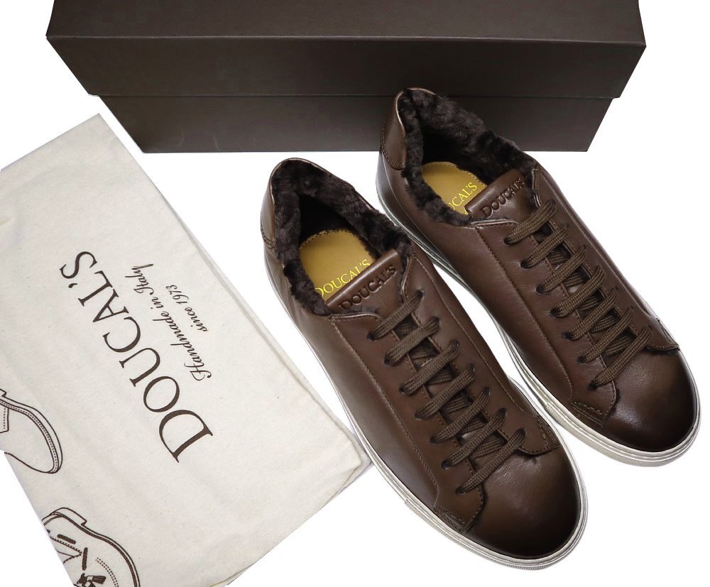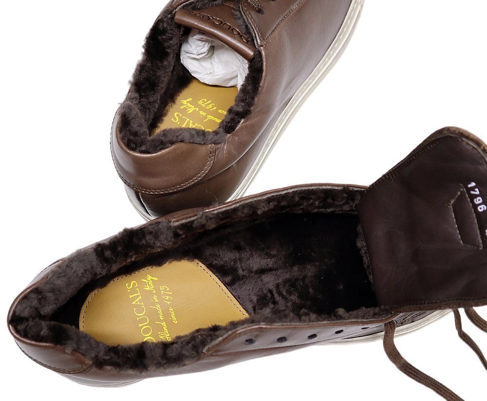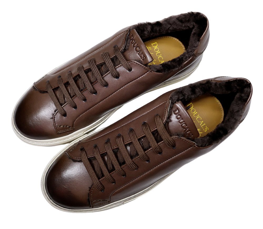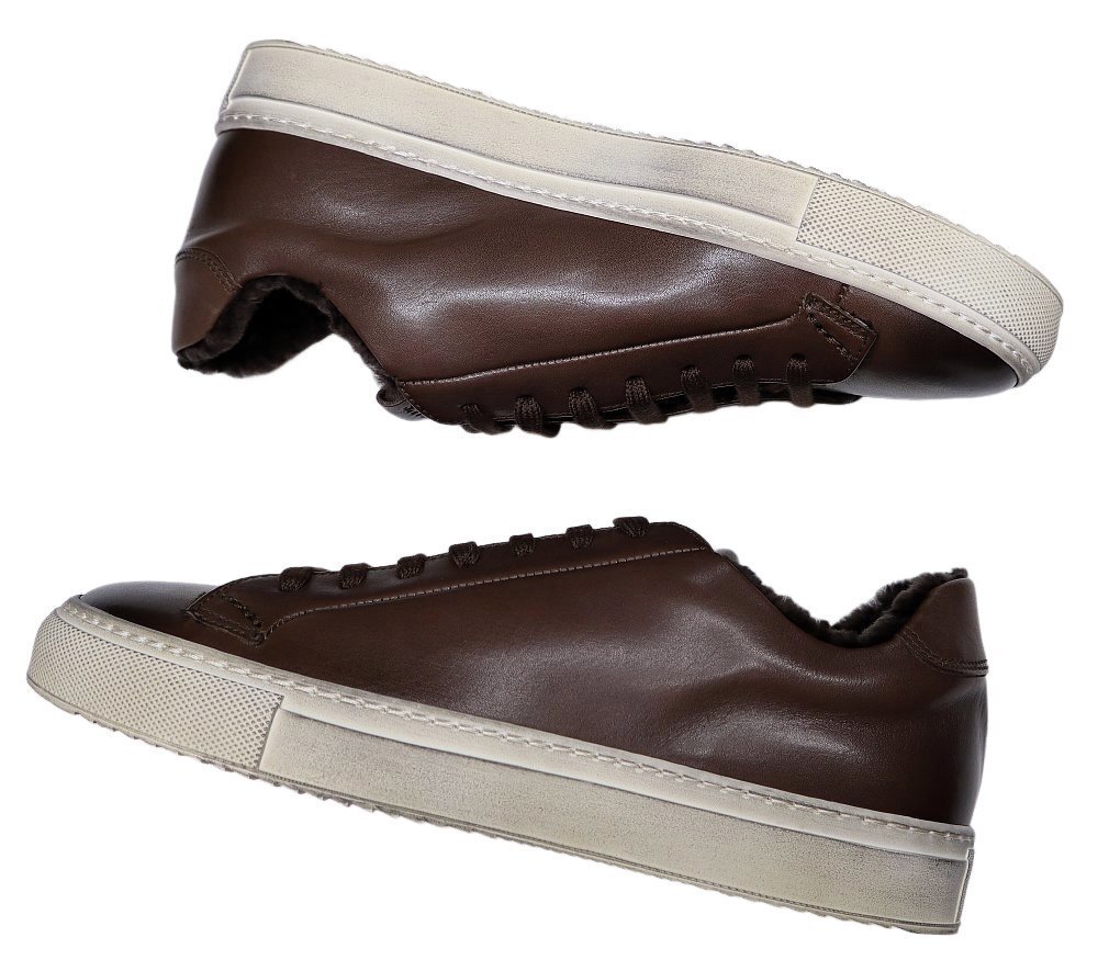 リッチで暖かく、洒脱な冬のレザースニーカー!【 DOUCAL'S / デュカルス (伊 】アンティーク濃茶のファー付き ドレススニーカー 40