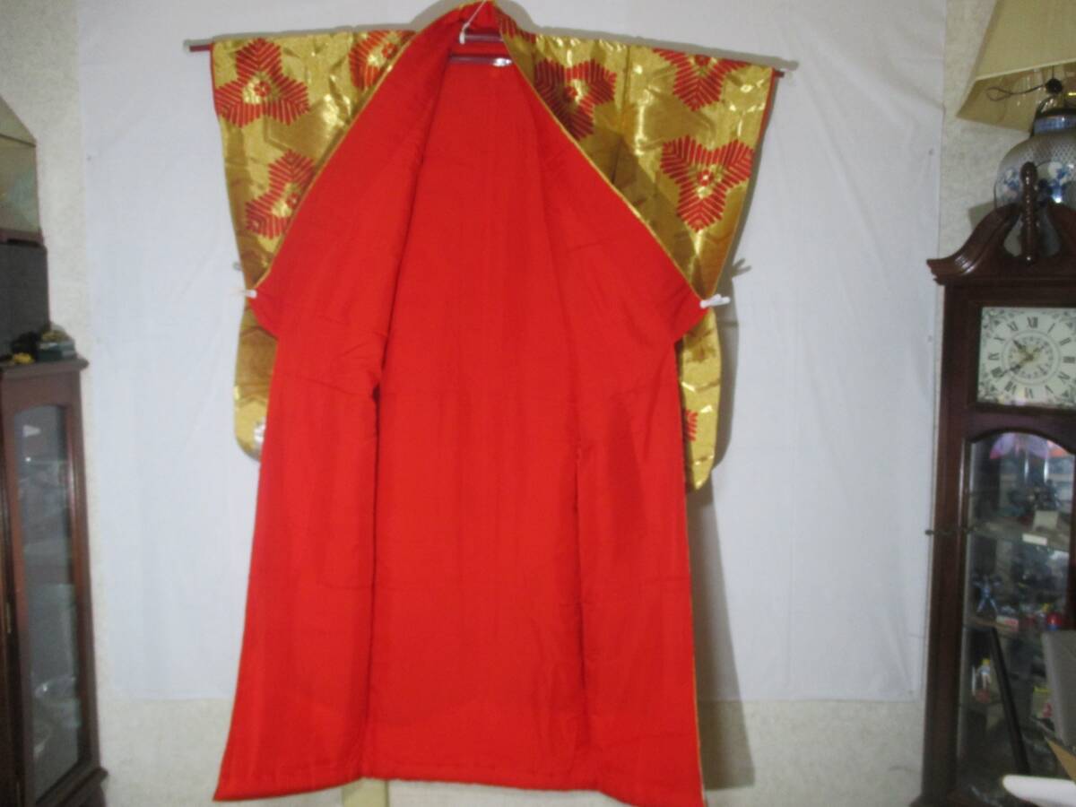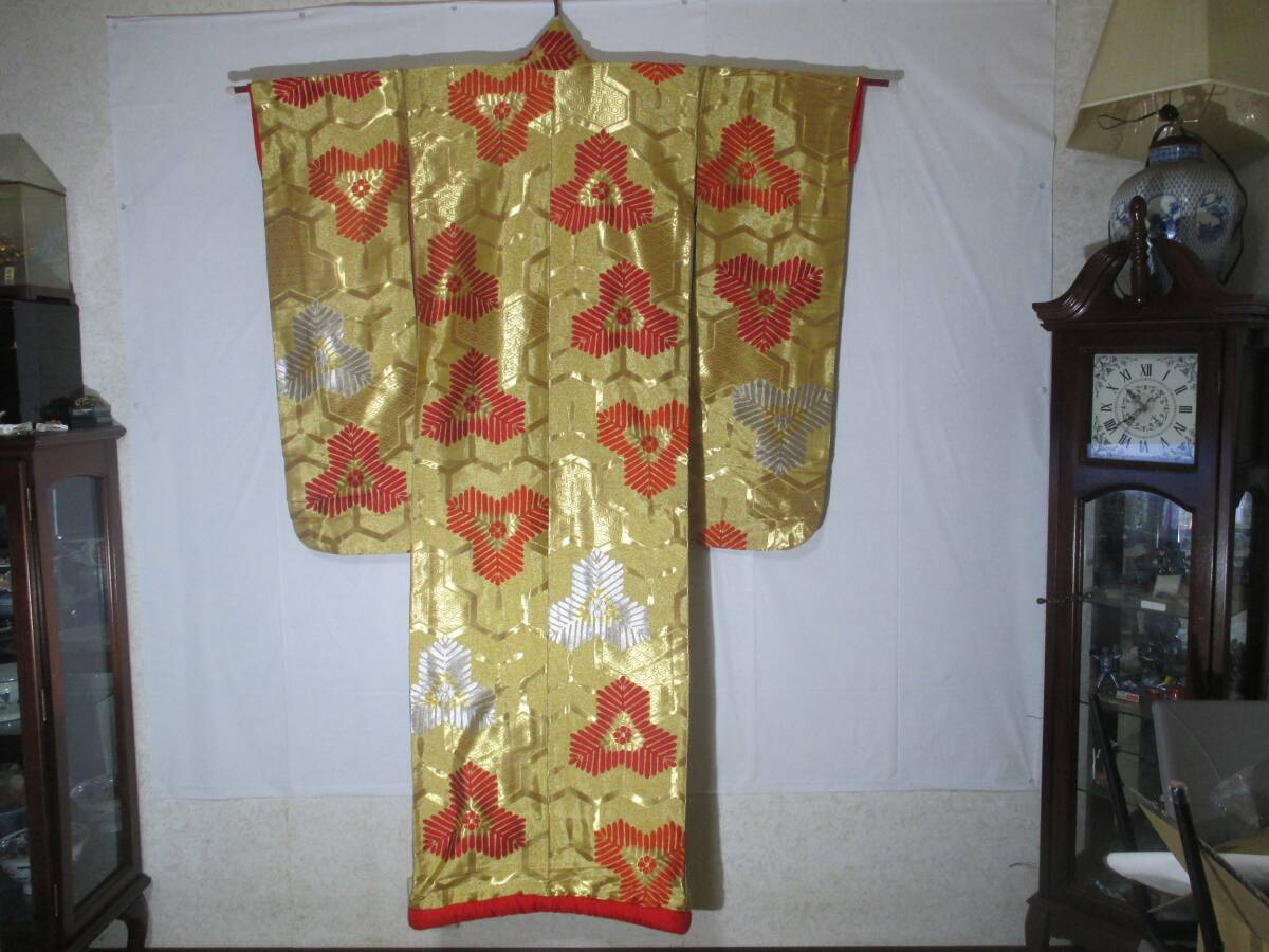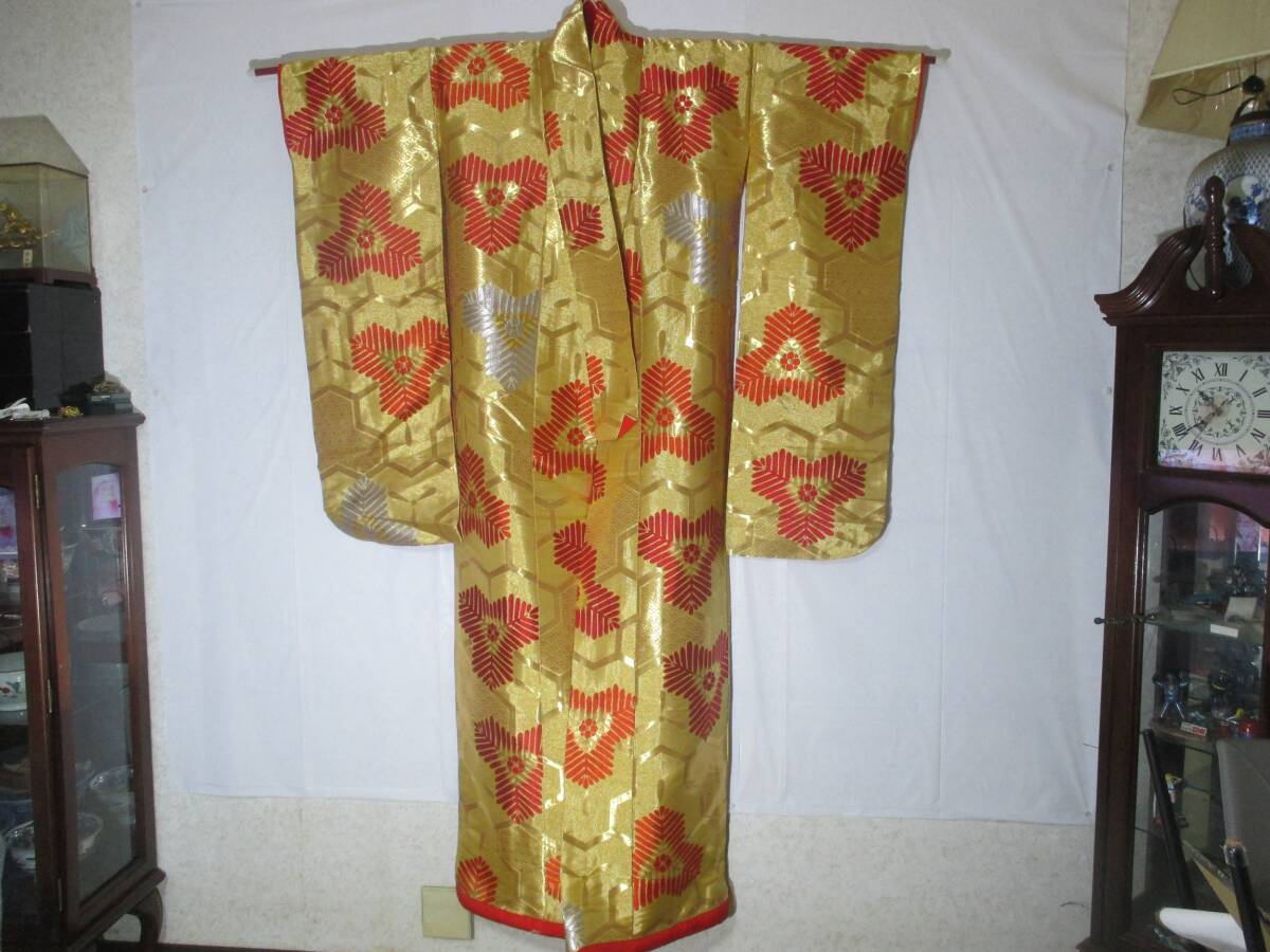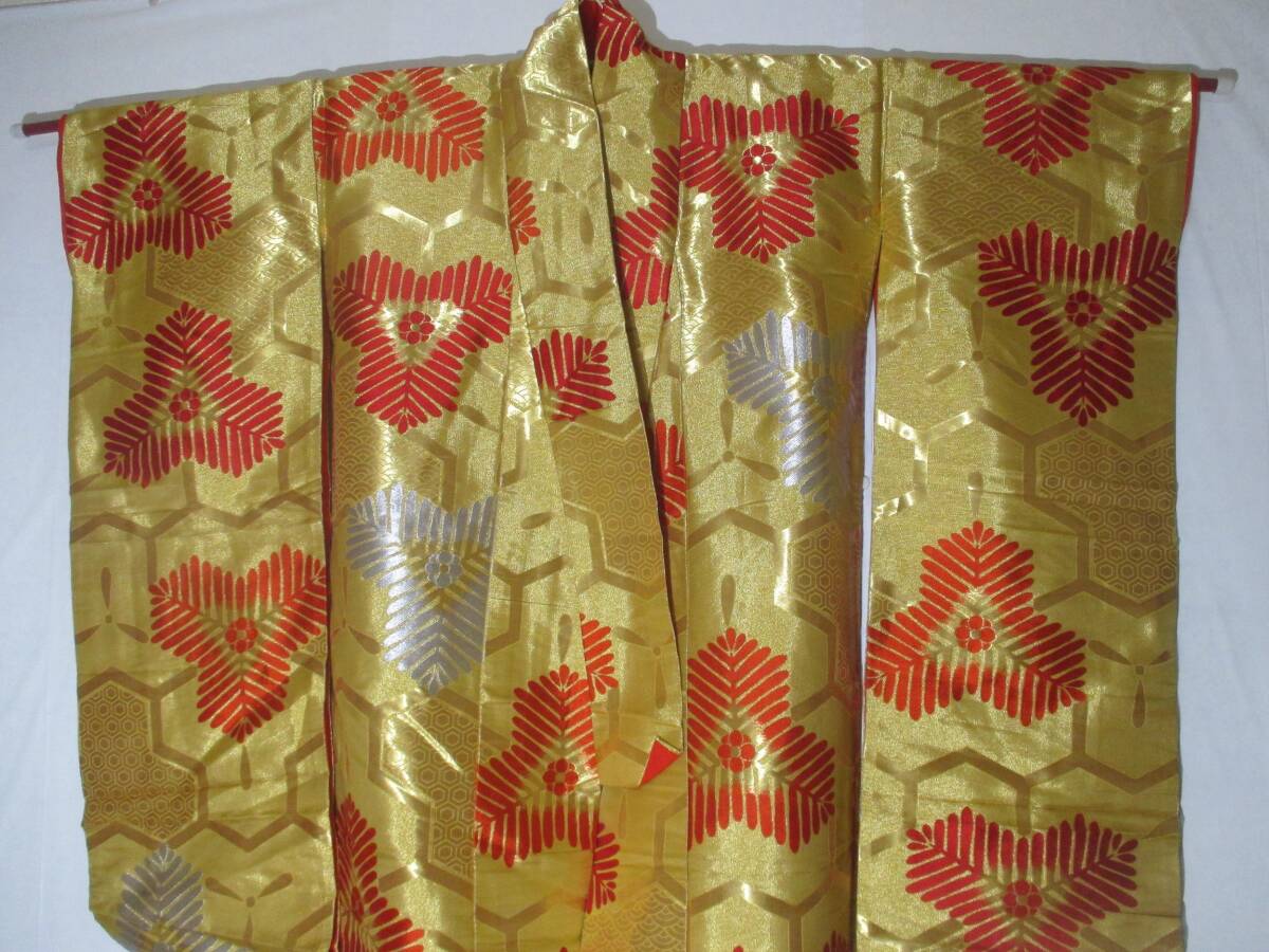 【桃太郎】打掛★花嫁衣裳 亀甲模様 金色打掛中古品 刺繍(アンティーク)