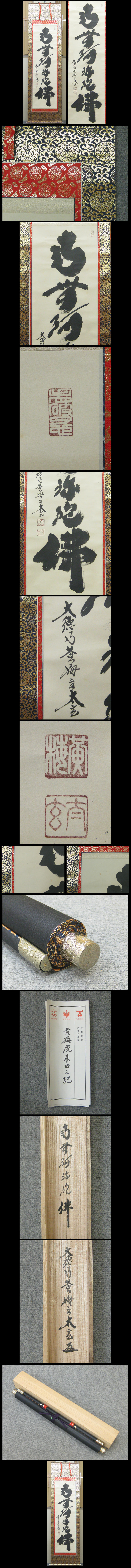 【小林太玄】(太玄義透) 昭和13年奉天(今の瀋陽)生。兵庫県の赤穂育ち。 昭和50年大徳寺塔頭黄梅院住職に就任。 豪快な書体は人気が高い。 ★商品サイズ★ ■掛軸 195×54cm ■作品 132×39cm ★商品の状態★ 作品上部に小さいしみ汚れがあります。 ご承知のうえご入札をお願いします。 時代など詳しくは画像にてよく確認のうえでご検討いただければと思います。 どうぞよろしくお願いいたします。 |