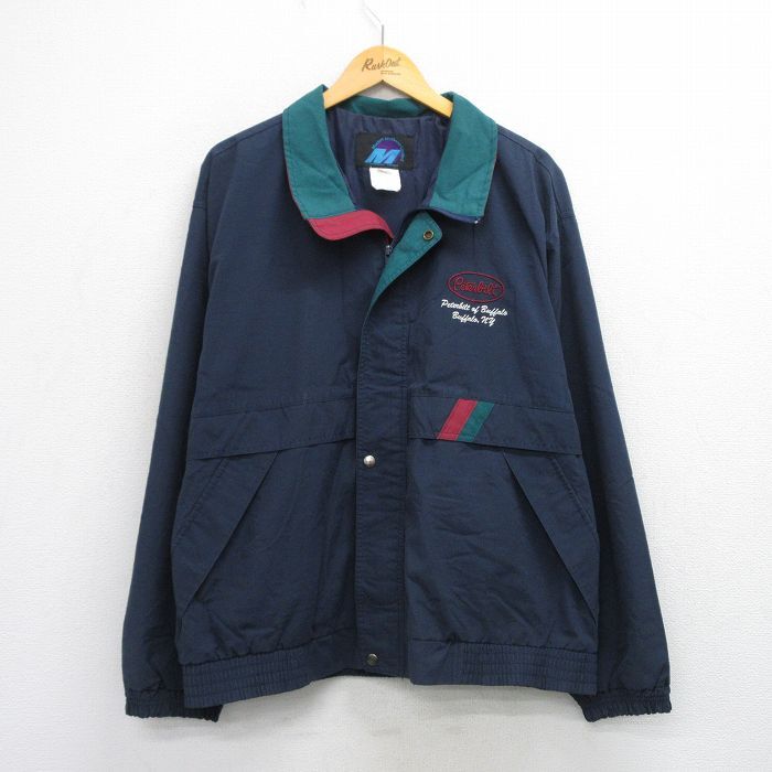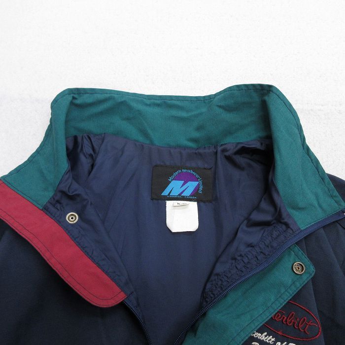 【商品名】 XL★古着 長袖 ジャケット メンズ 90年代 90s トラック 刺繍 大きいサイズ 濃紺