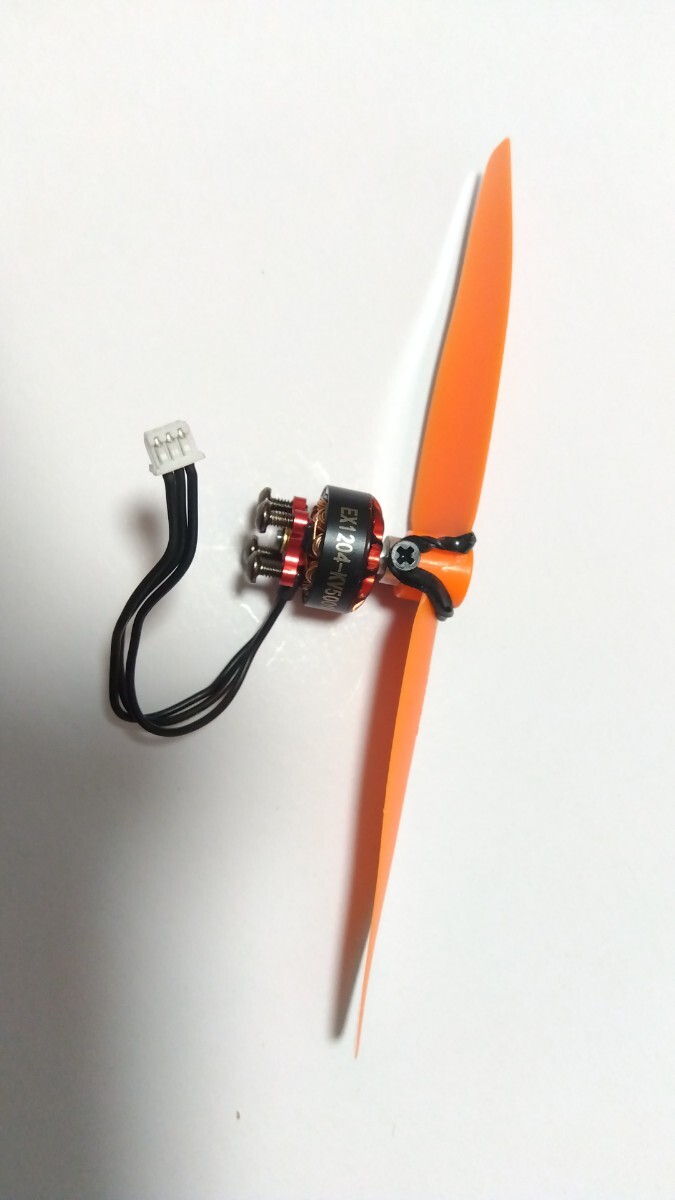 出品してる小さなアクロ機に使えるブラシレスモーター(EX1204/5000KV)とプロペラセーバー(シャフト1.5ミリ)とプロペラ2枚(EP4530)プロペラとめる輪ゴム4つ付き