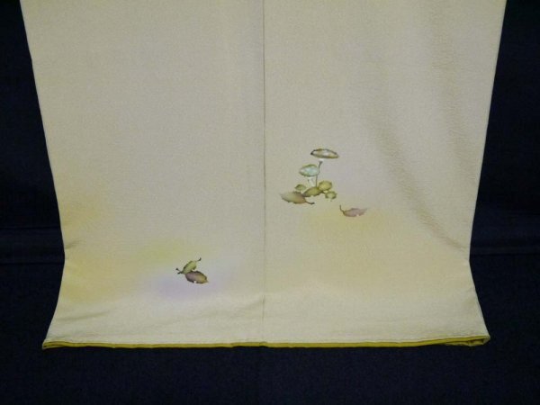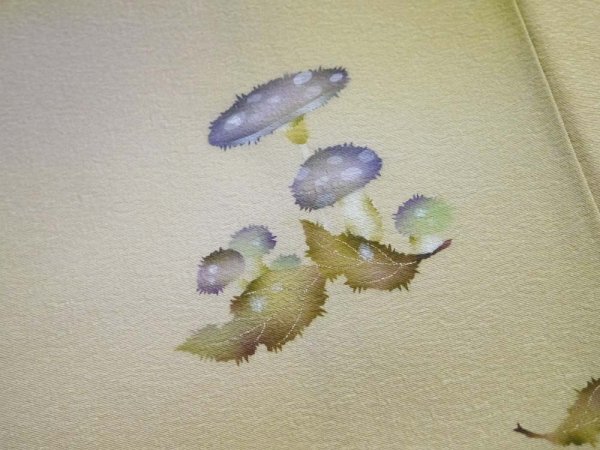 ベージュ地、柄部分がほんわか黄と紫の暈しになっています。