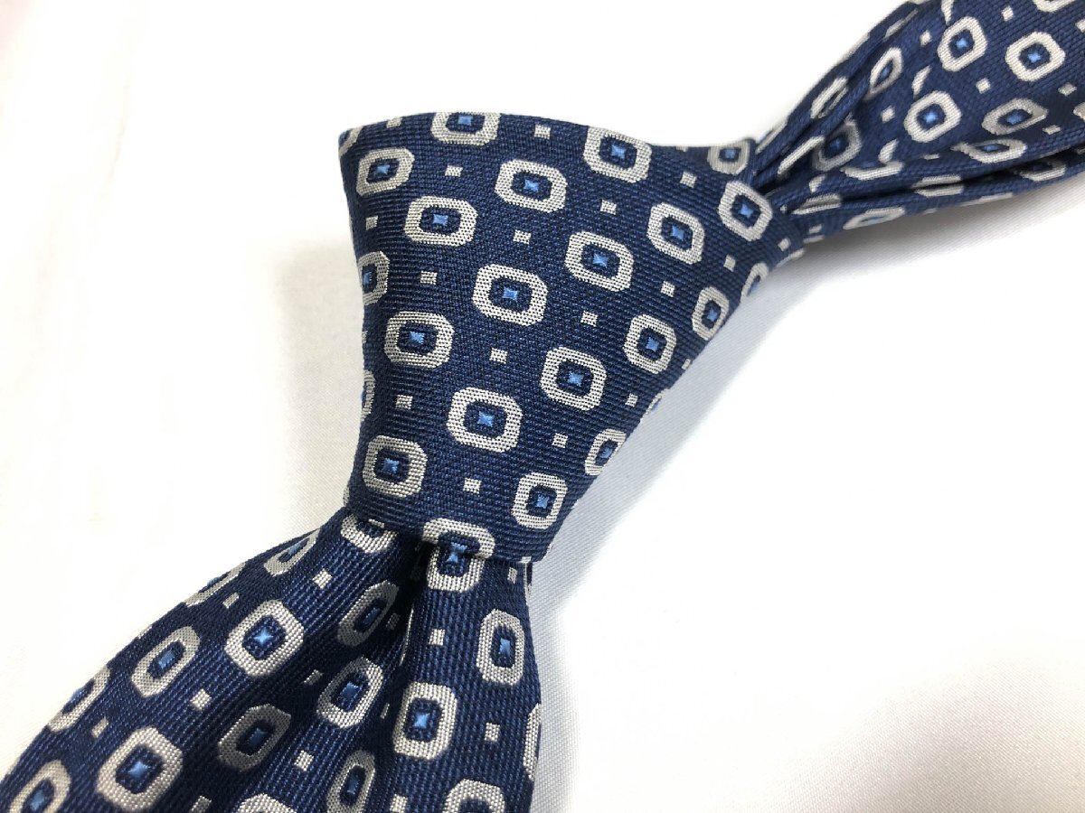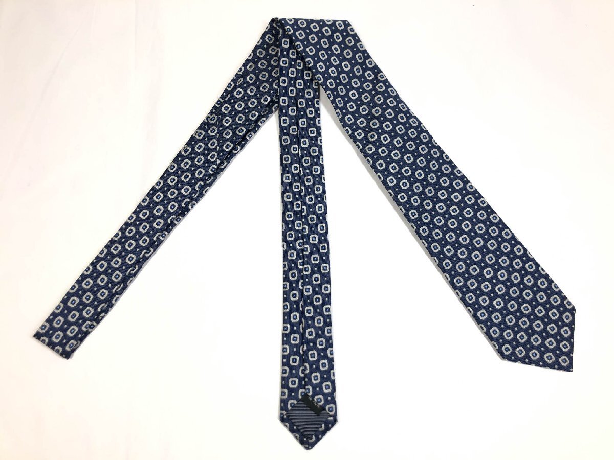 超美品【アルチザン ARTISAN】素敵なドット風刺繍柄♪ シルク ネクタイ (メンズ) ネイビー×ライトグレー系 ◇17MM8707◇