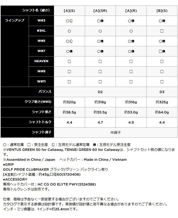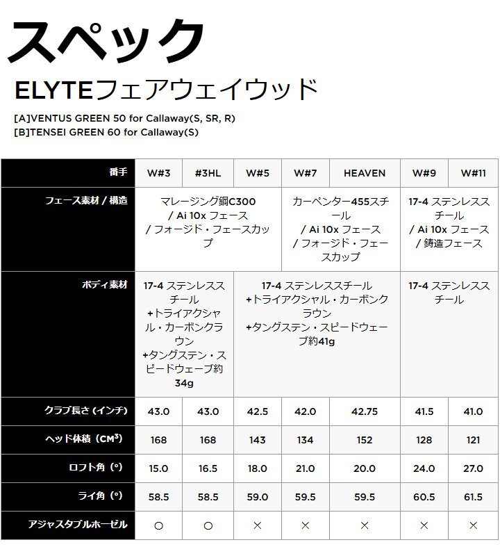| モデル名 | 2025年 モデル ELYTE:エリート フェアウェイ 日本仕様 |