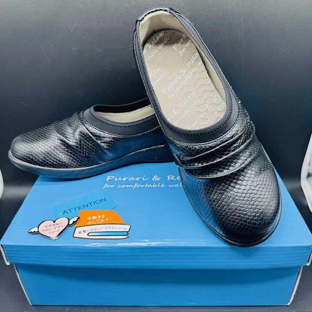 | 1円出品 プラリアンドリラックス お散歩美人 外反母趾でも細みえ4Eスリッポン 靴 お散歩美人 レディース 23.5㎝ ブラック 未使用 13248 | ||