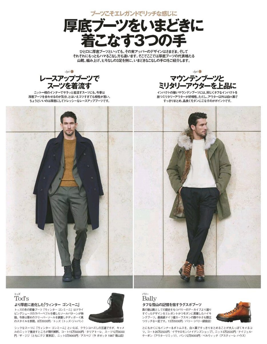 これならカジュアルパンツはもちろんのこと、ドレスパンツにもマッチ。ファッション関係者の間で、スーツにハズシでマウンテンブーツやモンキーブーツを合わせるのが人気ですが、このフォルムとカラーならきれいにまとまるはず。圧底の背高と脚長効果もありますし、脚を組んだ時の存在感も秀逸です!