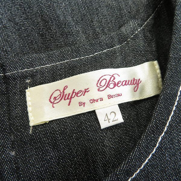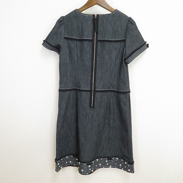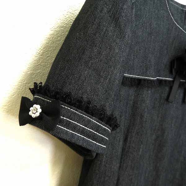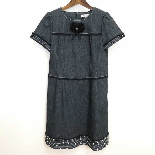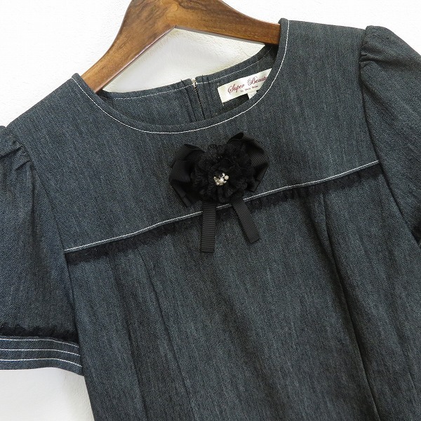 | 商品名 | #s スーパービューティー SUPER BEAUTY 半袖 ワンピース 42 紺系 デニム風 リボンブローチ付き リボン レース パール 915580 k01 |