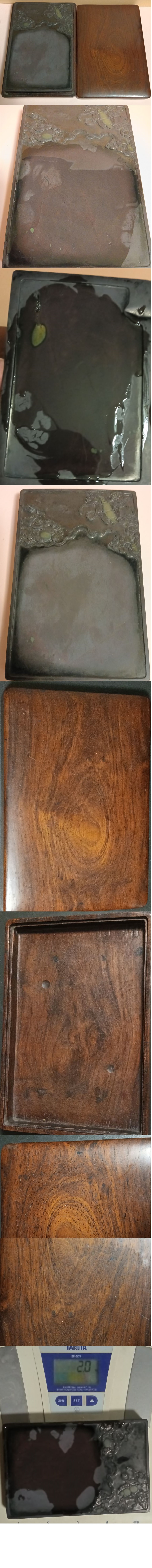 清代 端渓硯 端硯 祥雲六福紋 端渓硯 13.5x20.5x2.8cm 老坑 黄花梨蓋 古物 唐物 老坑 水巌 有眼 書道具 文房具 中国美術