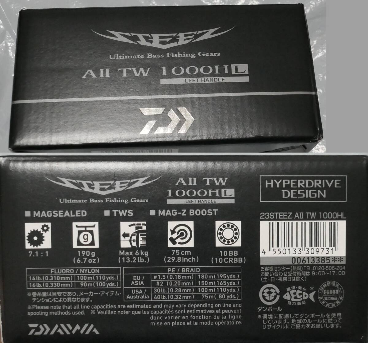 新品未使用のダイワ 23スティーズ AⅡ TW 1000HL 左ハンドル 34mmΦ【Daiwa STEEZ A2TW 左巻き 7.1ハイギア】の出品です。