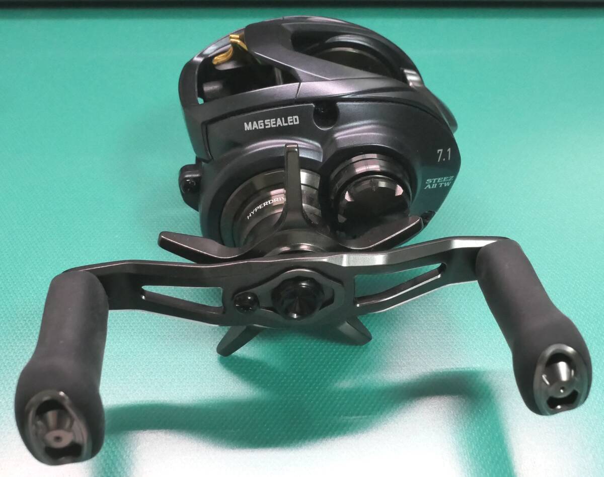 • STEEZ A II TWには、新開発直径34mmG1ジュラルミン製超高精度MAG-Z BOOSTスプールを搭載。従来比較で約5%の軽量化(※BB除く)を達成した高レスポンススプールにより、タフフィールドで必要とされる実践的なキャスト性能が魅力の1台と仕上がった。 確かな巻きをアシストするハイグリップIシェイプラージノブ(Sノブタイプ)と新設計の90mmAL製ハンドル。またスタードラグさえもAL化を施して、ドラグ調整&ドラグ引き出しクリックやMAGSEALEDボールベアリングも標準装備。