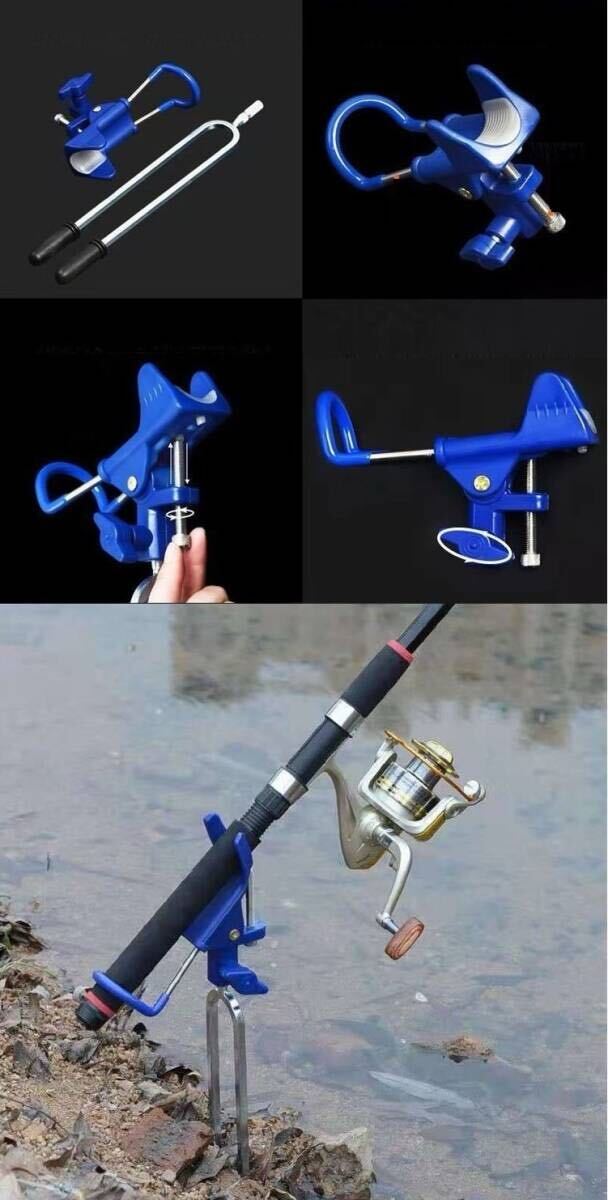 ロッドスタンド 釣り ブラケット竿置き 360度 位置調節可 青