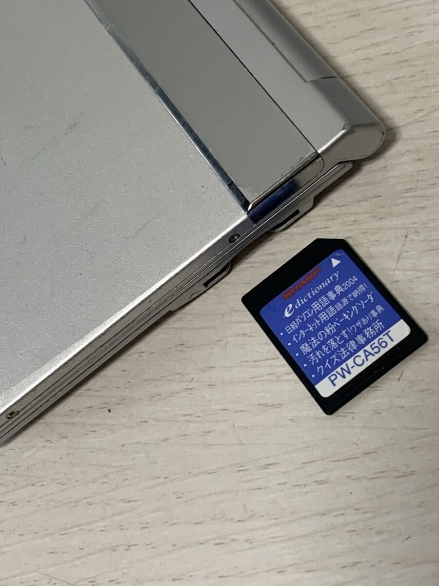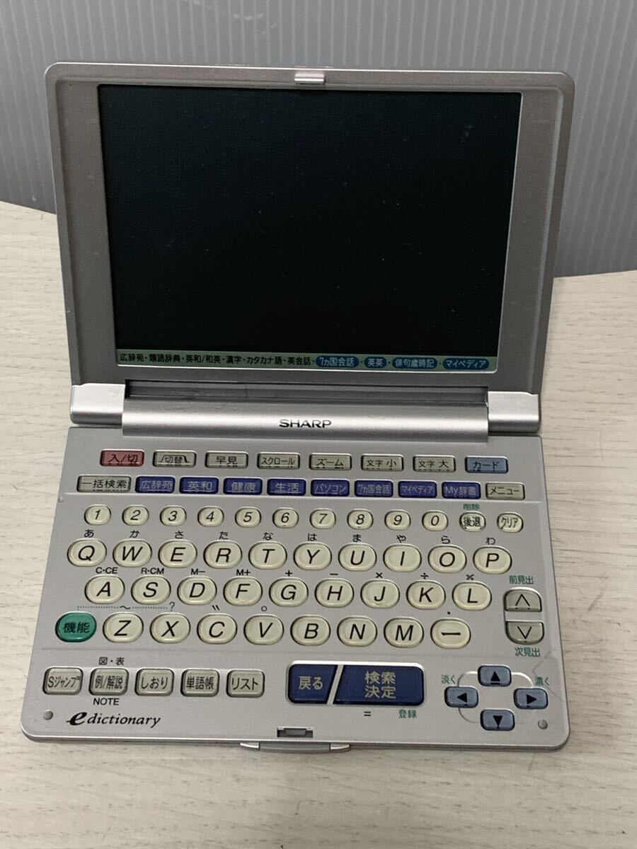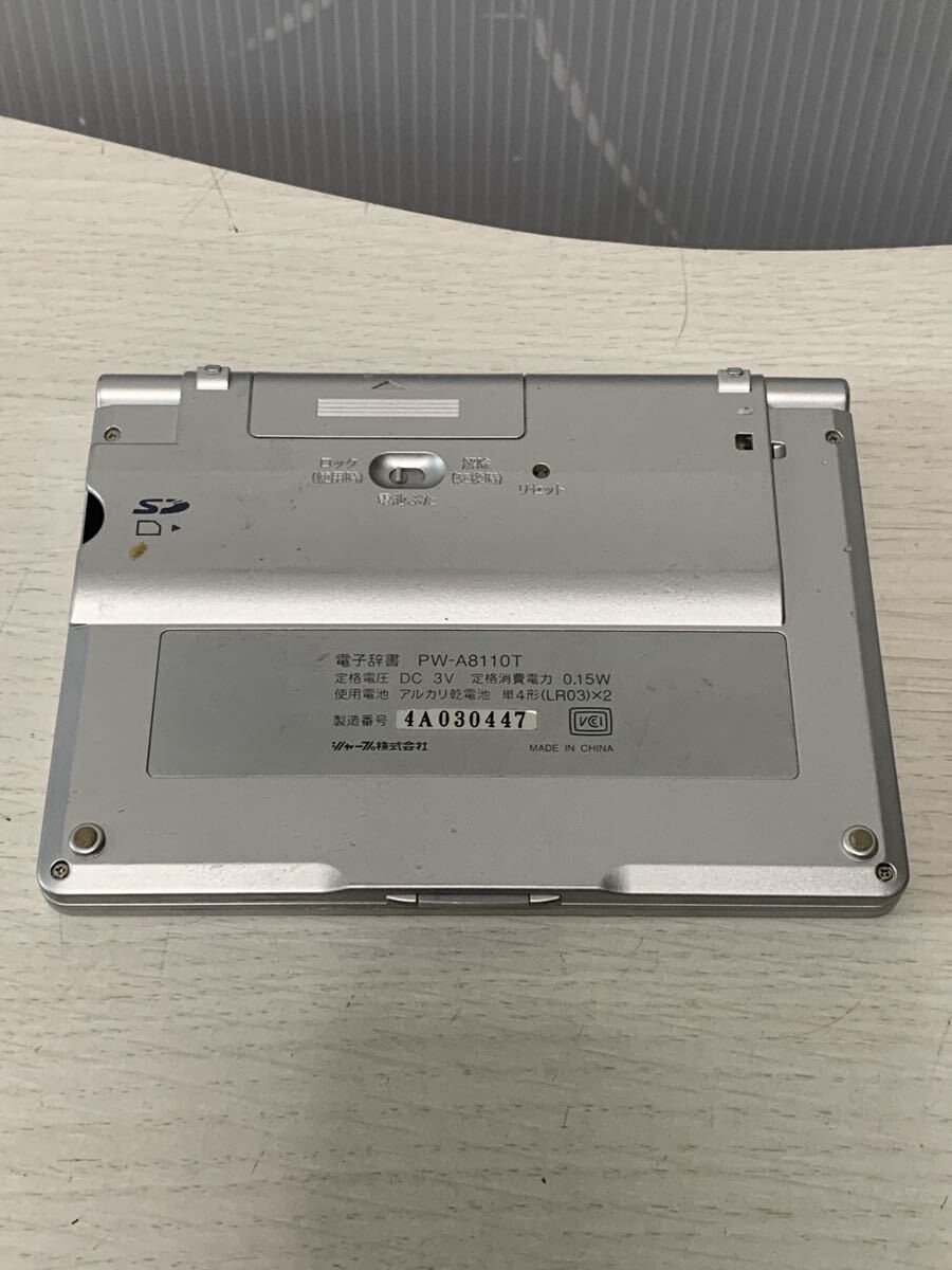 SHARPの電子辞書、e-dictionary PW-A8110Tです。広辞苑、英和/和英辞書、英会話、7ヶ国語会話など、様々なコンテンツが収録されています。