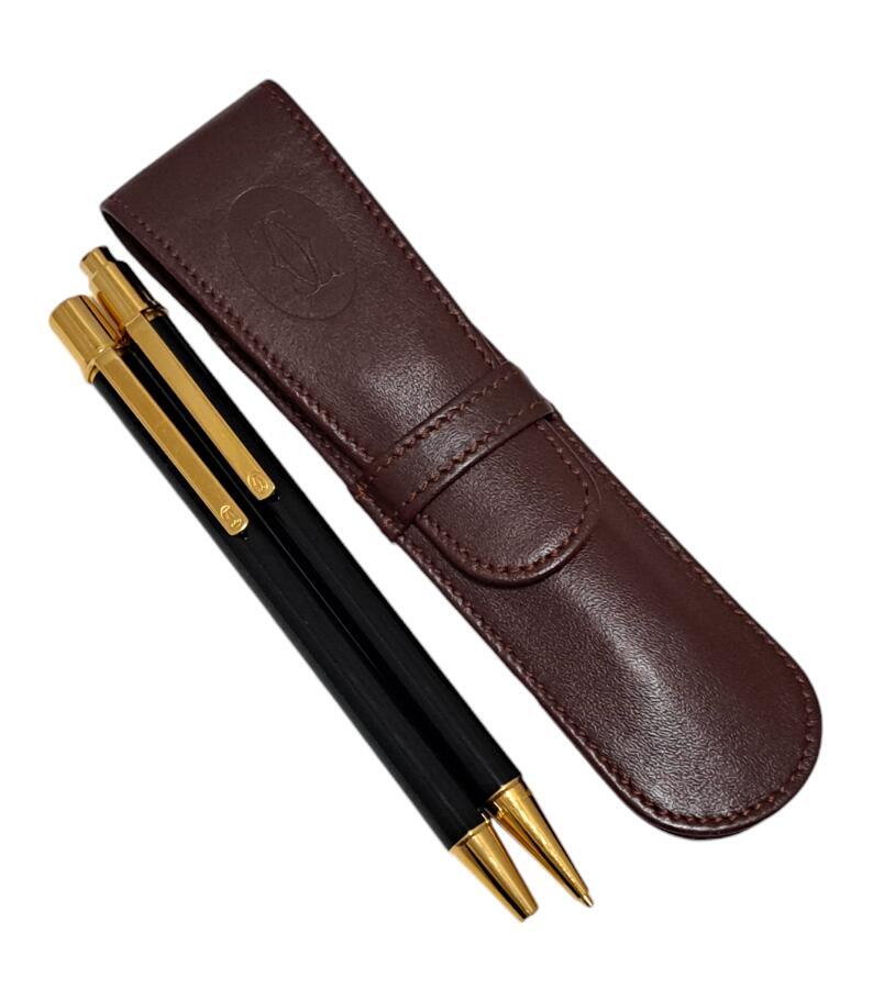 カルティエ ボールペン シャープペン ペンケース セット マスト ブラック ゴールド Cartier 高級ボールペン 黒 【中古】