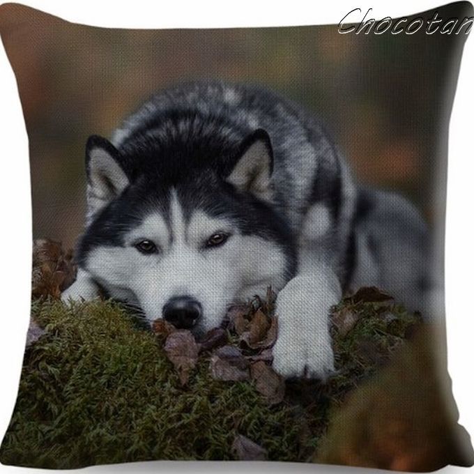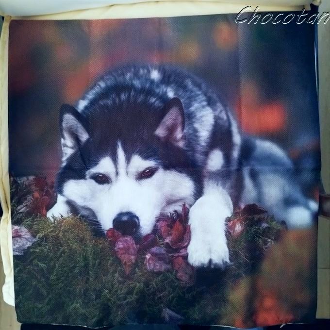 【送料無料】シベリアンハスキー J コットンリネン 45x45cm クッションカバー【新品】