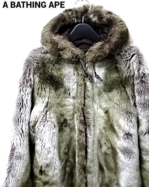XS 青山限定【A BATHING APE ア ベイシング エイプ ファージャケット Bape パーカー ジャケット オールド レア フェイクファー NIGO レア】