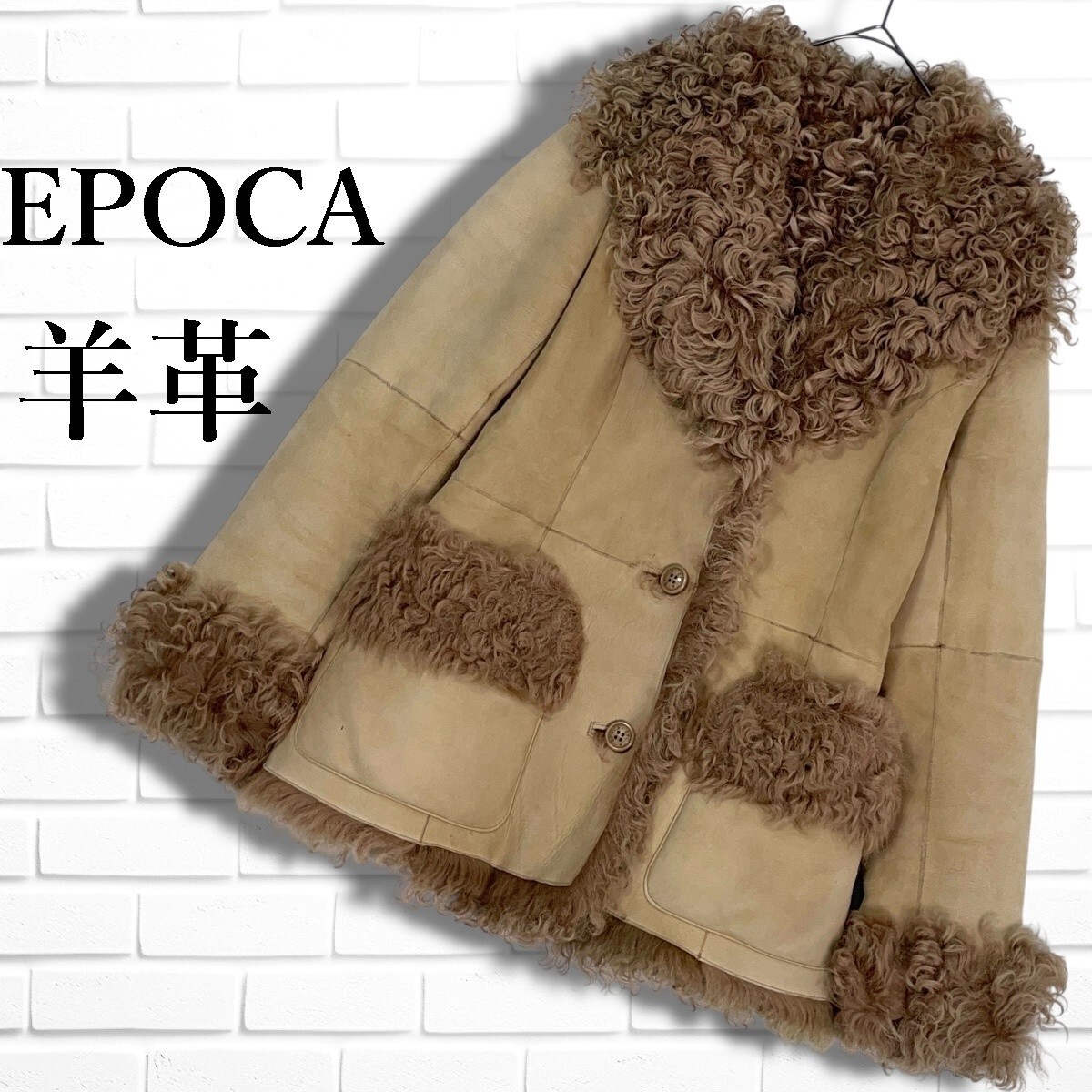 ◆良品◆ EPOCA エポカ 羊革 ラム 本革 ムートン ジャケット コート ベージュ レディース 40 ◆送料無料◆ 2765J◇