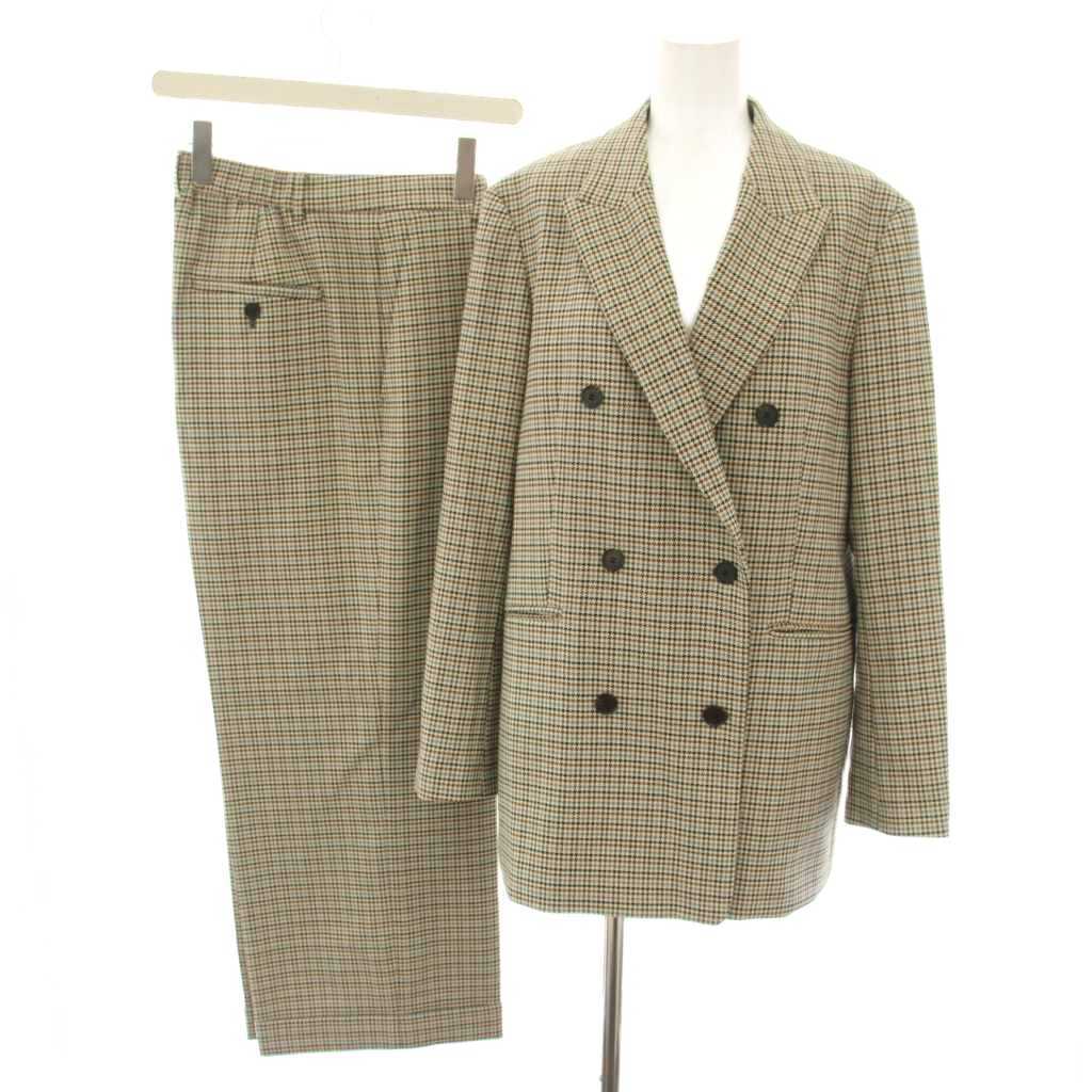 【実寸サイズ】ジャケット 肩幅:約40cm ジャケット 身幅:約51cm ジャケット 袖丈:約59cm ジャケット 着丈:約71cm パンツ ウエスト:約78~cm パンツ もも幅:約29.5cm パンツ 裾幅:約27cm パンツ 股上:約31.5cm パンツ 股下:約63.5cm