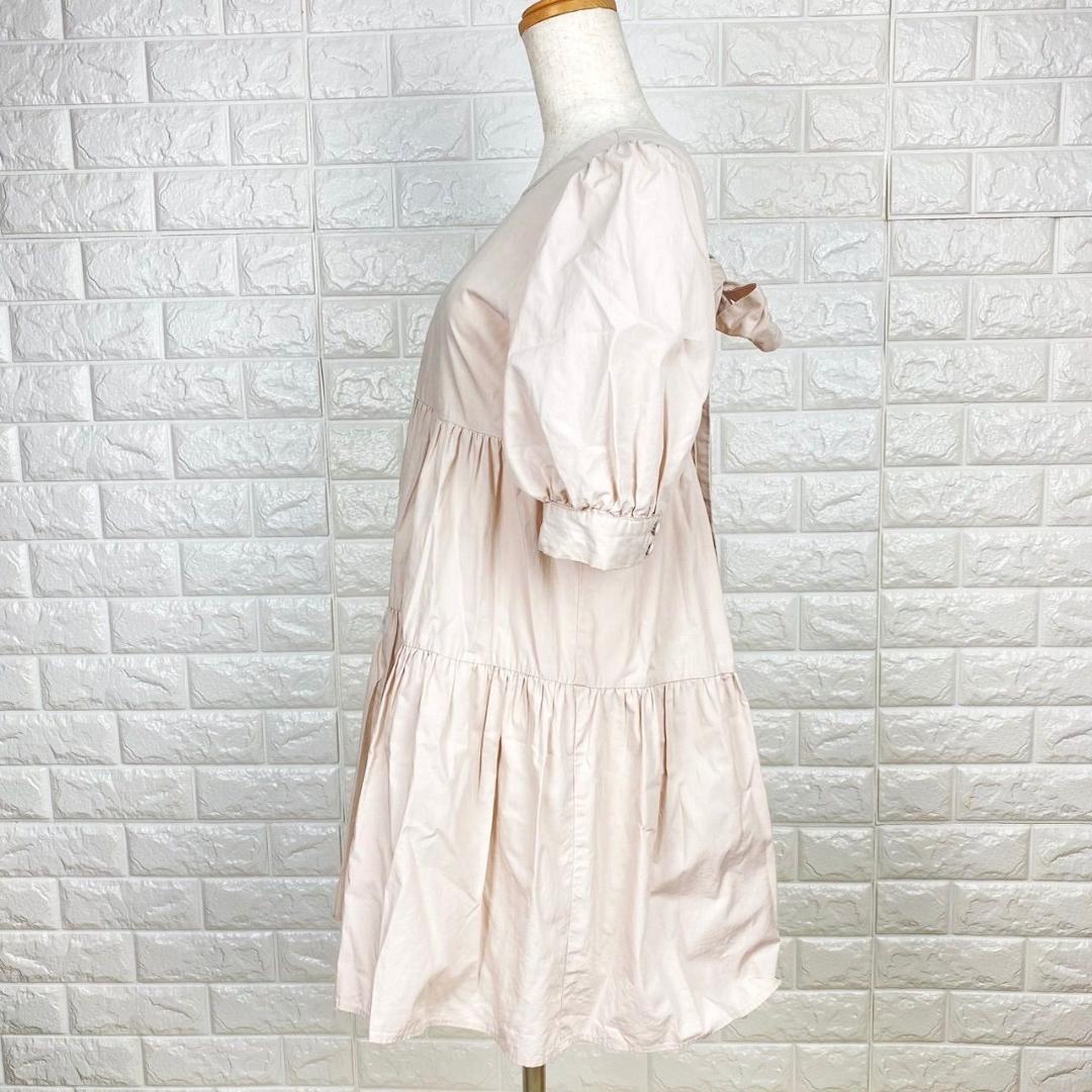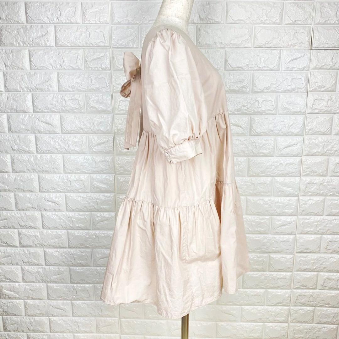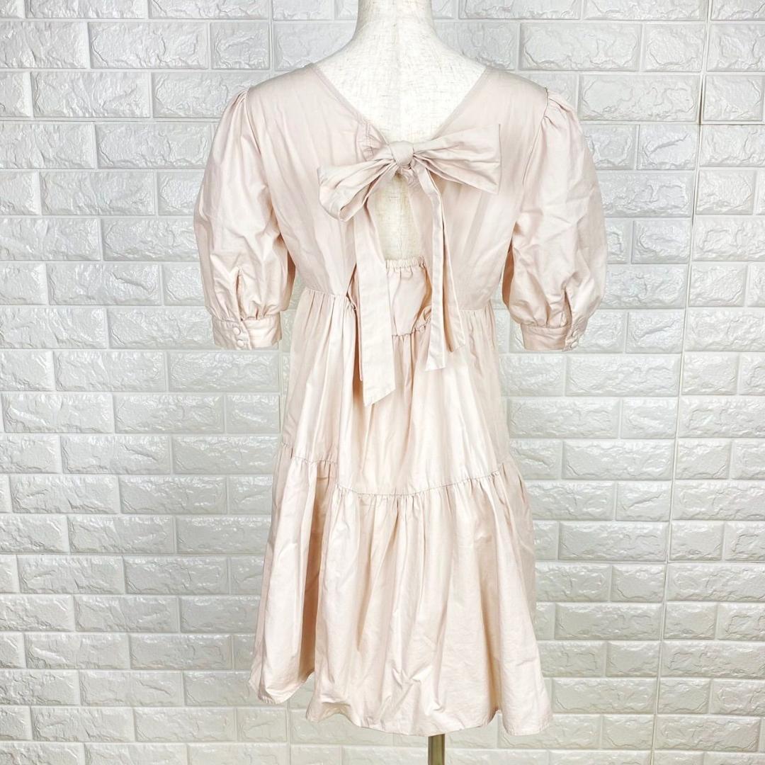 【AA1894】 NICE CLAUP ナイスクラップ フリーサイズ ティアードワンピース ピンク フリルスリーブ バックリボン フェミニン