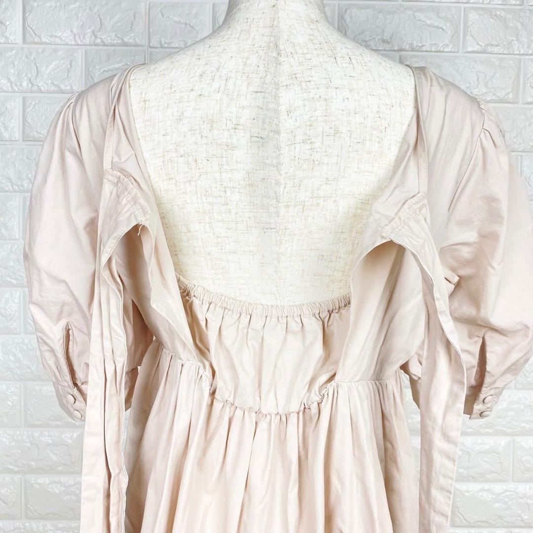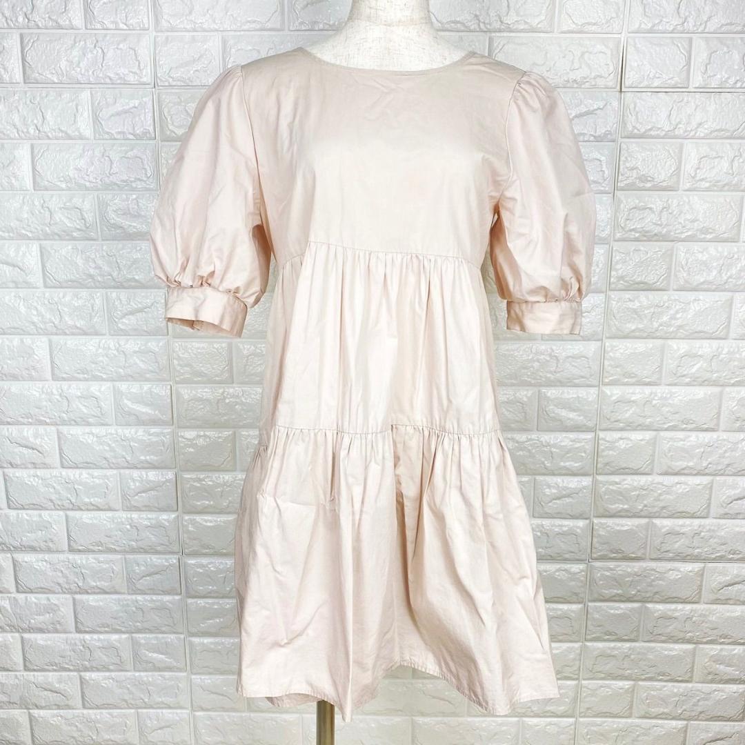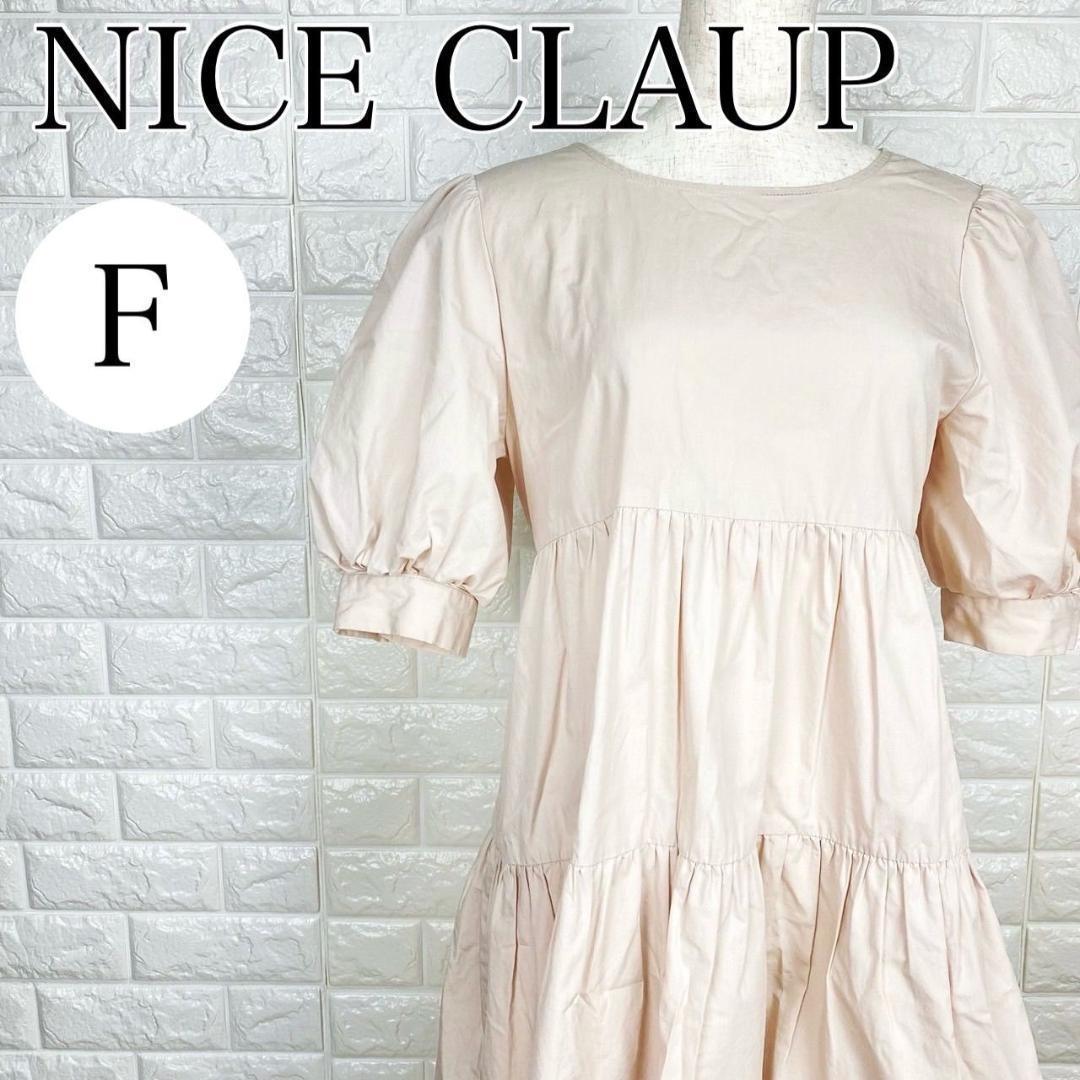 【AA1894】 NICE CLAUP ナイスクラップ フリーサイズ ティアードワンピース ピンク フリルスリーブ バックリボン フェミニン