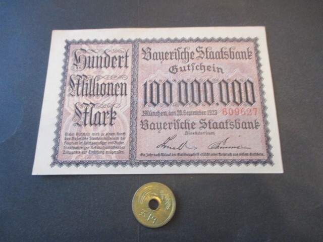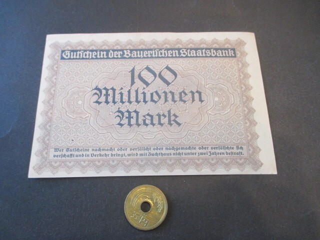 準未使用+ ドイツ諸州・バイエルン国家銀行 1923年 1000万マルク