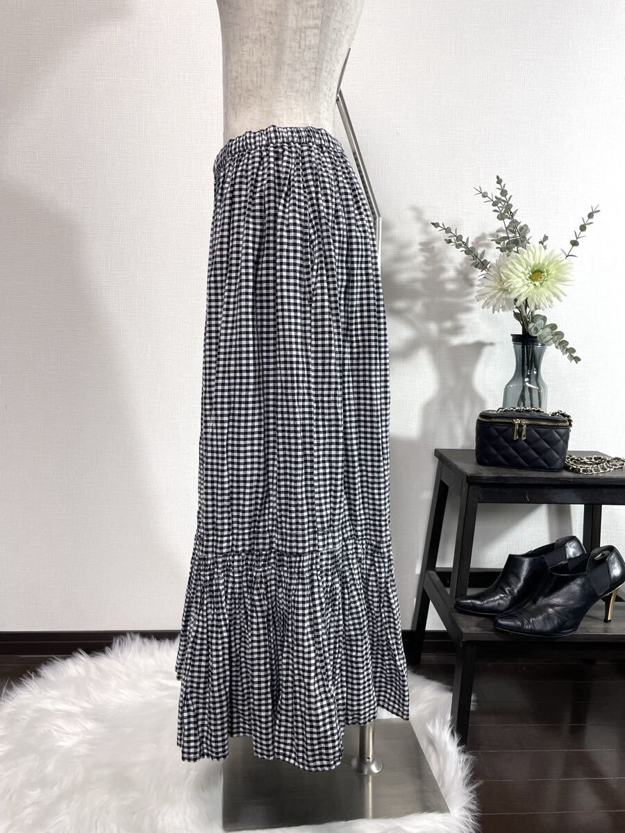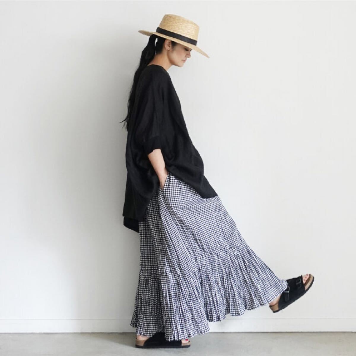 ギンガムの大きさも丁度良くベーシックに着まわせるスカート。カラーコーデに困らないギンガムはベーシックカラーはもちろん、すっきりモノトーンコーデにも凛と映えます。