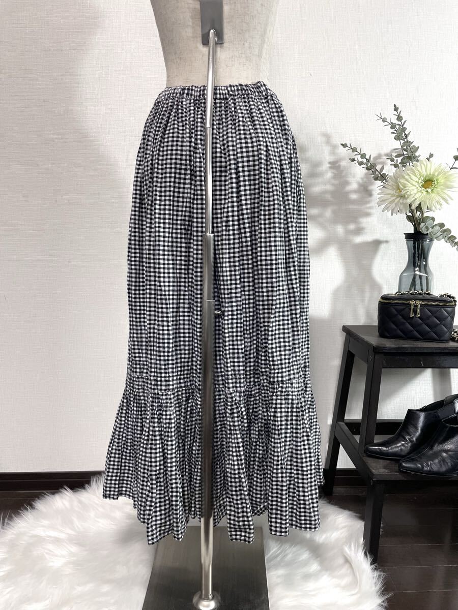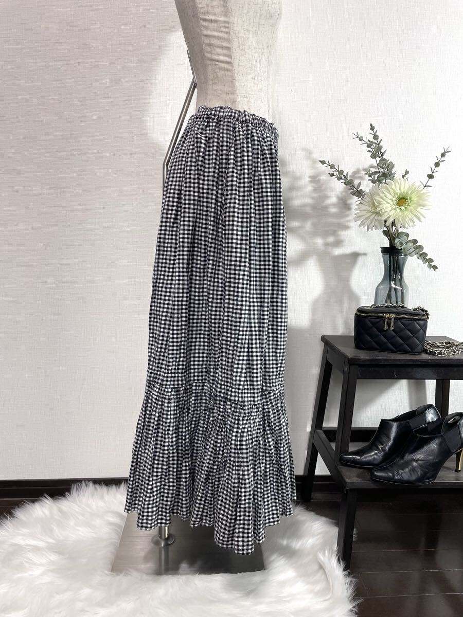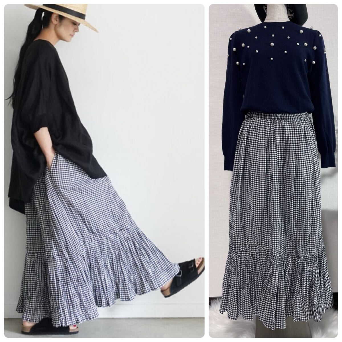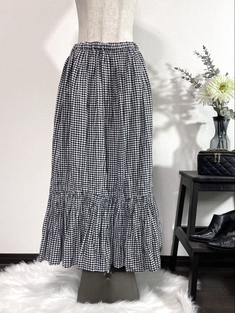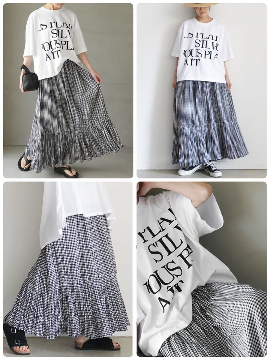 ギンガムの大きさも丁度良くベーシックに着まわせるスカート。カラーコーデに困らないギンガムはベーシックカラーはもちろん、すっきりモノトーンコーデにも凛と映えます。