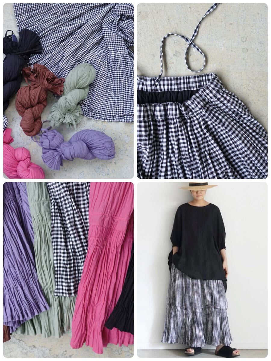 インド製の柔らかく雰囲気あるコットンボイル地にたっぷりギャザーを入れてシワ加工 ( クリンクル )することで、細かい凹凸感が表情になったロングスカート。