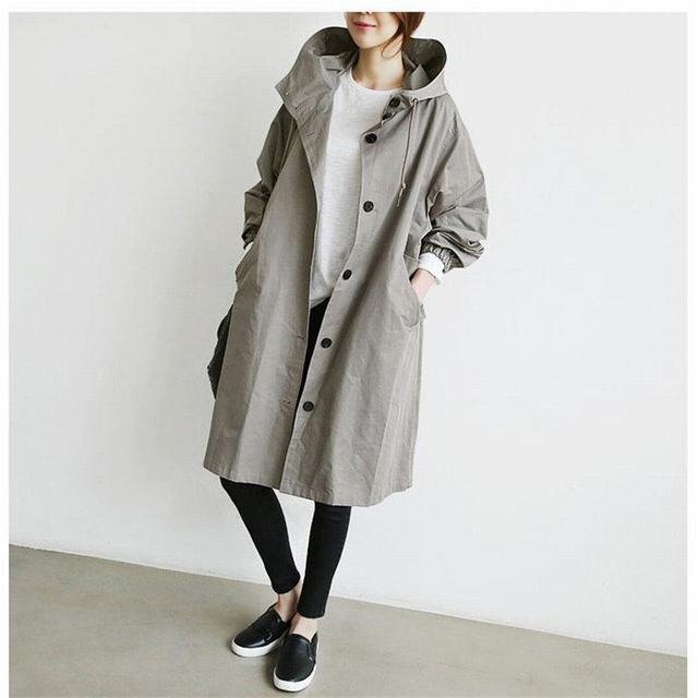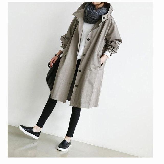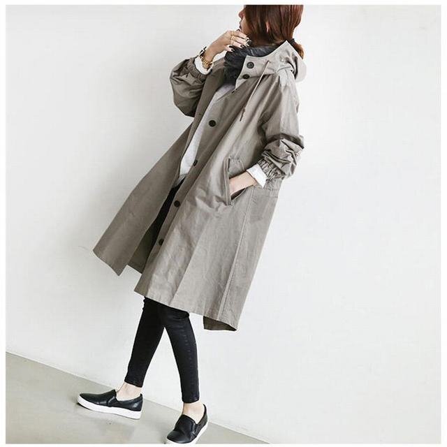 ライトコート レディース 秋 ジャケット ミリタリー ロング 防寒 フード 長袖 スプリング トレンチコートA02 M