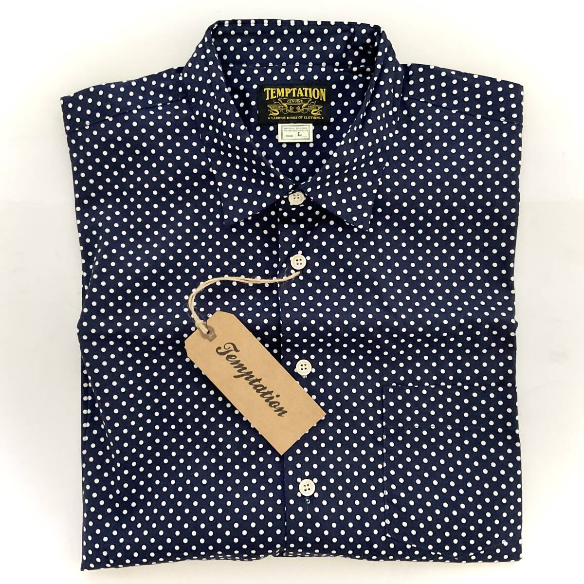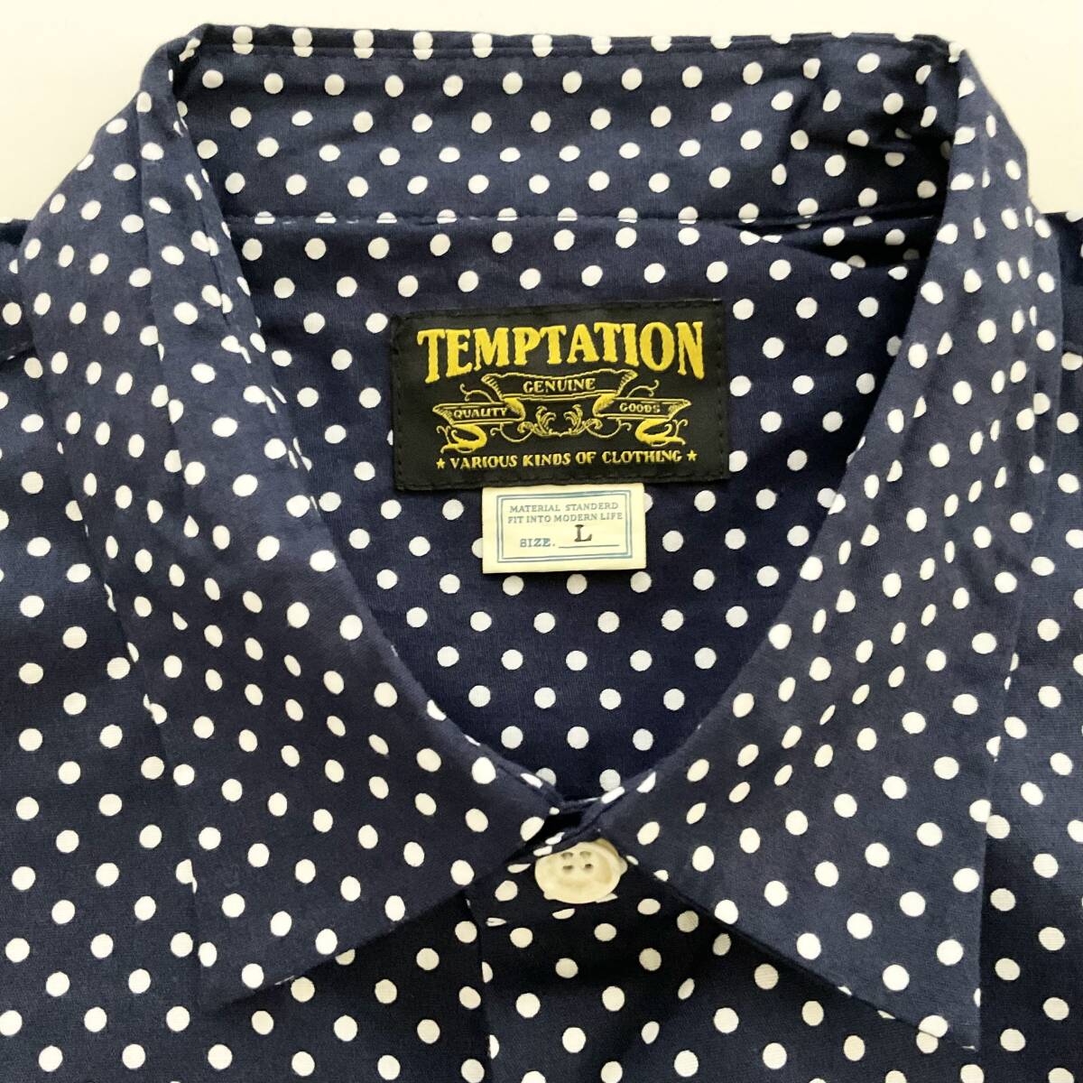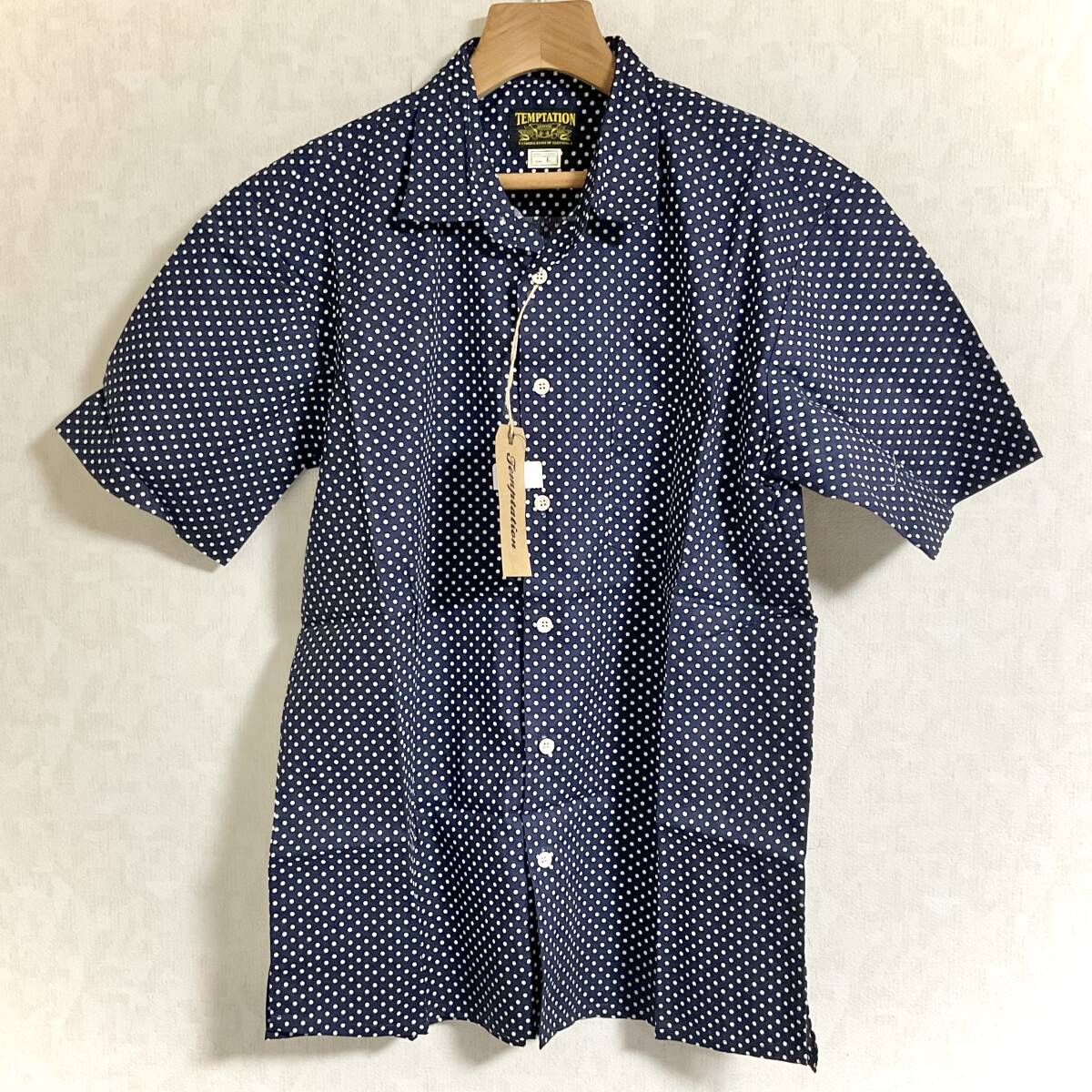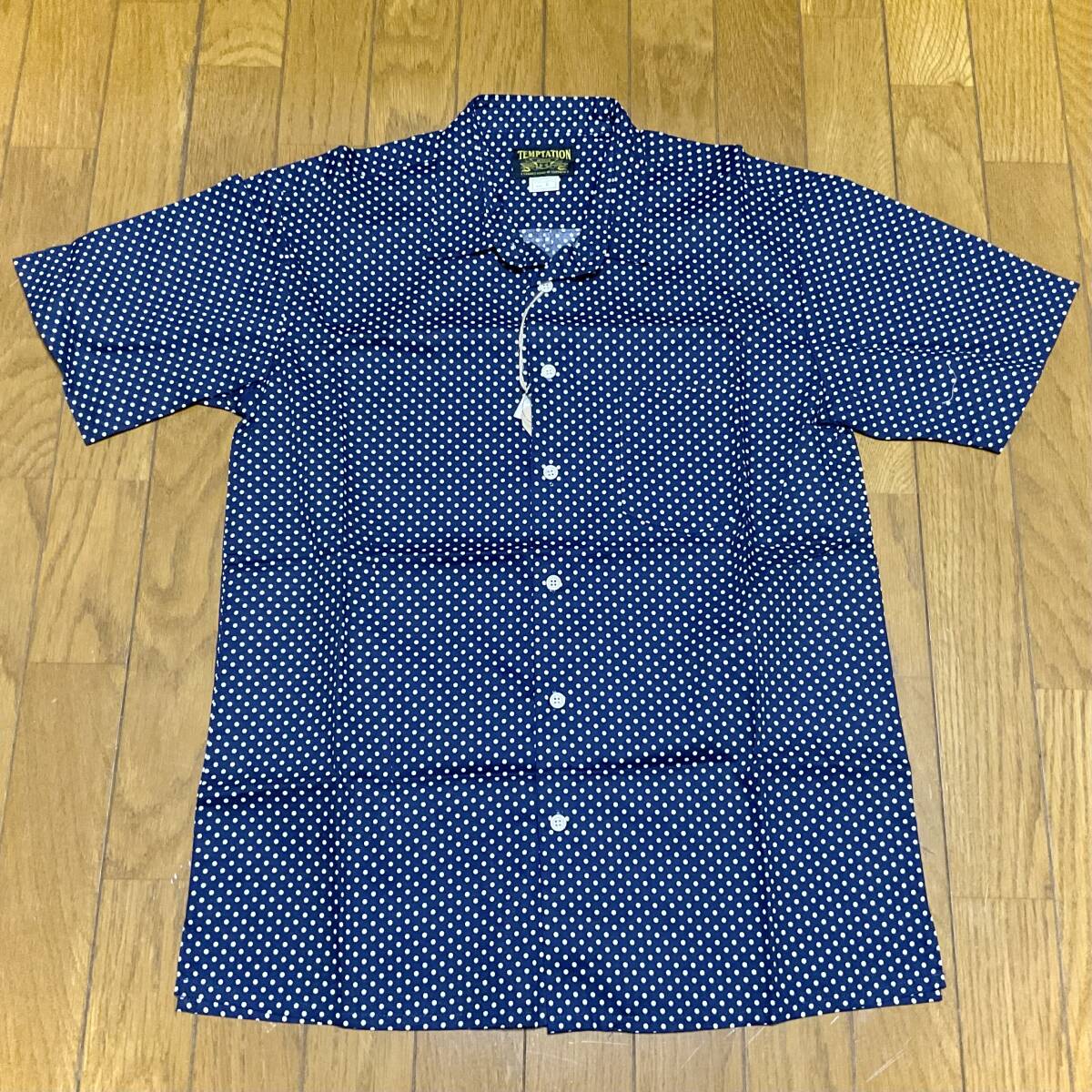 未使用 TEMPTATION 半袖シャツ プリント/ドット/紺白 サイズL コットン    W018