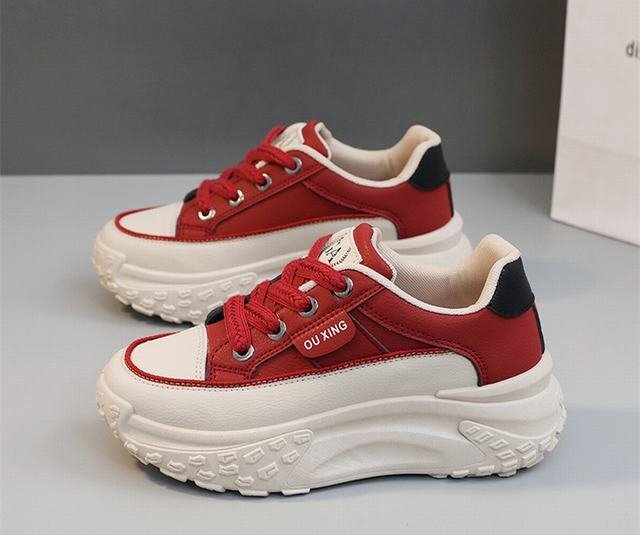 厚底スニーカー レディース インヒールシークレットシューズ 運動靴 軽量 美脚 疲れにくい レースアップ 身長アップ レッド 25cm