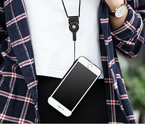 送料無料…リング部分から脱着できる ネック ストラップ 耐久性抜群 落下防止の2WAYタイプ 脱着簡単 便利 スマホ 鍵 (ブラック)