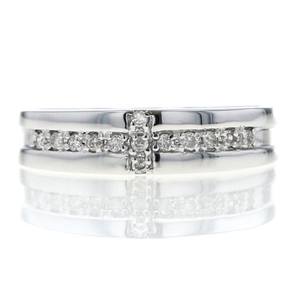 | 商品紹介 | クロスのラインにダイヤモンドがあしらわれた上品なデザインのホワイトゴールドリングです。 |