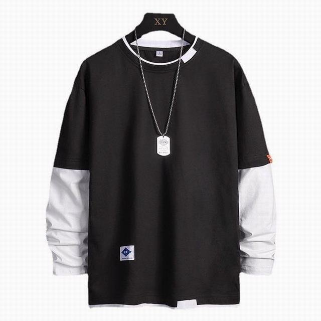 長袖 Tシャツ クールネック カジュアル トップス おしゃれ シンプル スポーツ 春秋 お洒落 メンズファッション ブラック L