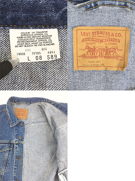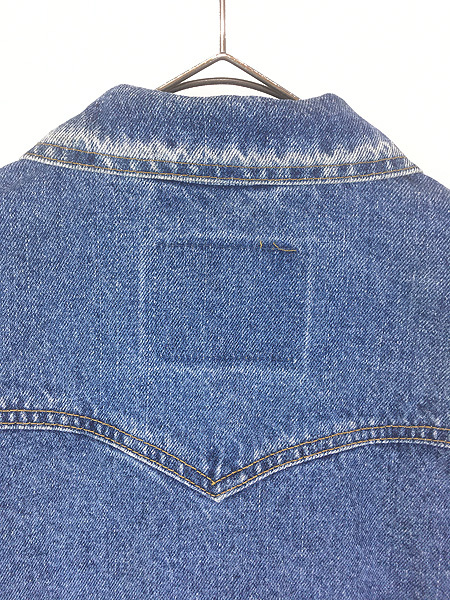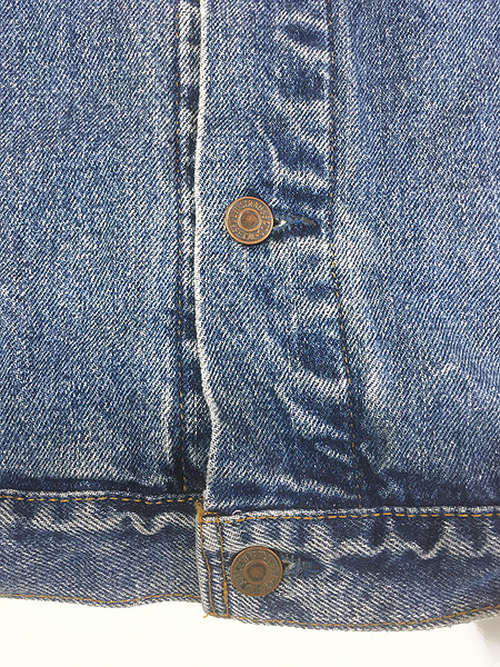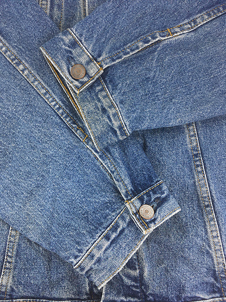 100%コットンデニム・襟ダブルステッチ・ハンドポケット付き。
