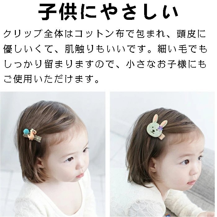 6.クリップ全体はコットン布で包まれ、頭皮に優しいくて、肌触りもいいです。細い毛でもしっかり留まりますので、小さなお子様にもご使用いただけます。