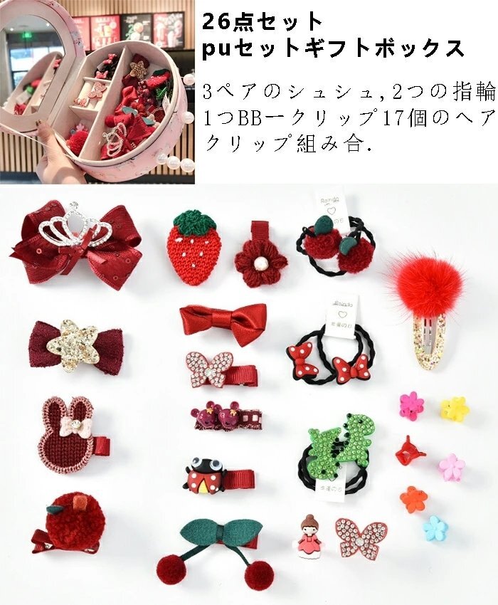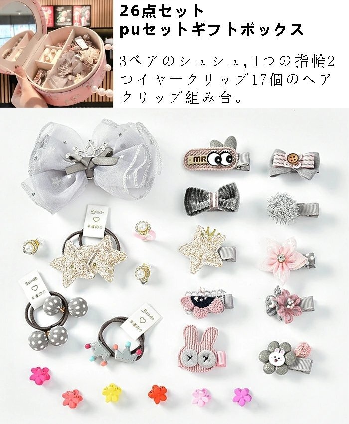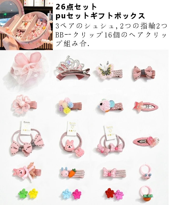ヘアピン セット 子供用 ヘアアクセサリー ジュエリーセットギフトボックス リトルガールヘアピンセット 26点セット☆カラー/6色選択/1点