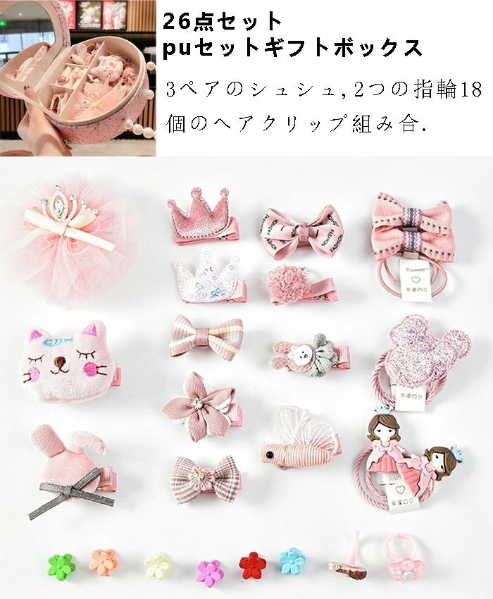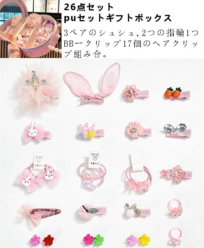 1.製品には、26種類のかわいいヘアピンが含まれており、女の子をお姫様のように見せることができます。