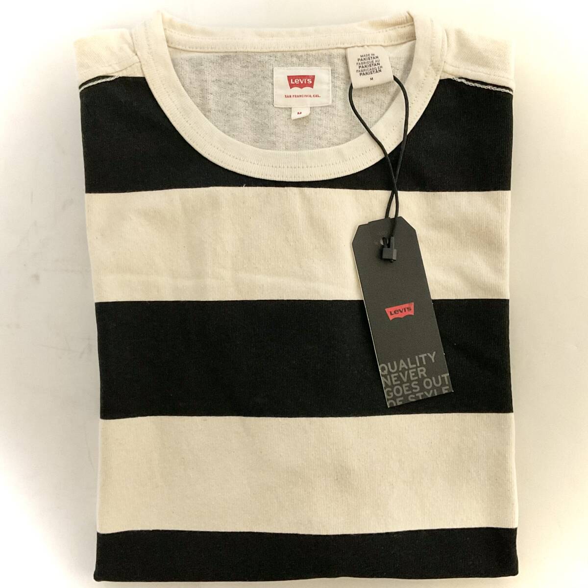 未使用 Levi’s Tシャツ ワイド/厚手 ボーダー/ブラック/オフホワイト サイズM    W018