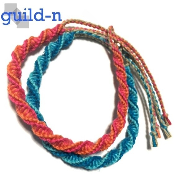 【guild-n ★ ペア 青 マリンブルー 水色 ピンク オレンジ 2点セット Wツイスト ヘンプ 麻 アンクレット ブレスレット ミサンガ おそろい】