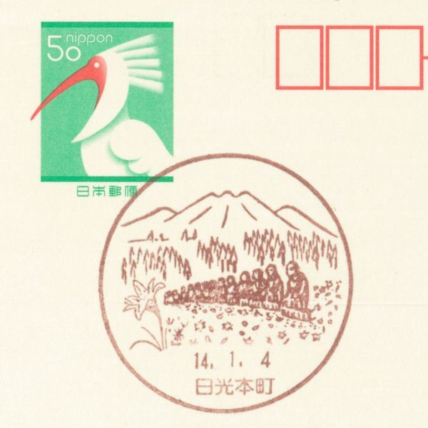 風景印☆初日☆栃木・日光本町・H14.1.4・旧印