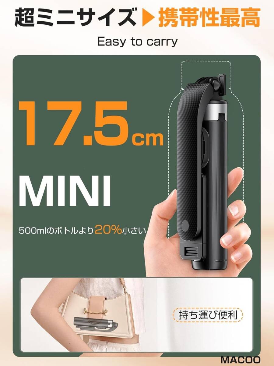 折りたたみ時は17.5cmと超コンパクト。最大103cmまで9段階伸縮可能で、どこでも撮影可能。