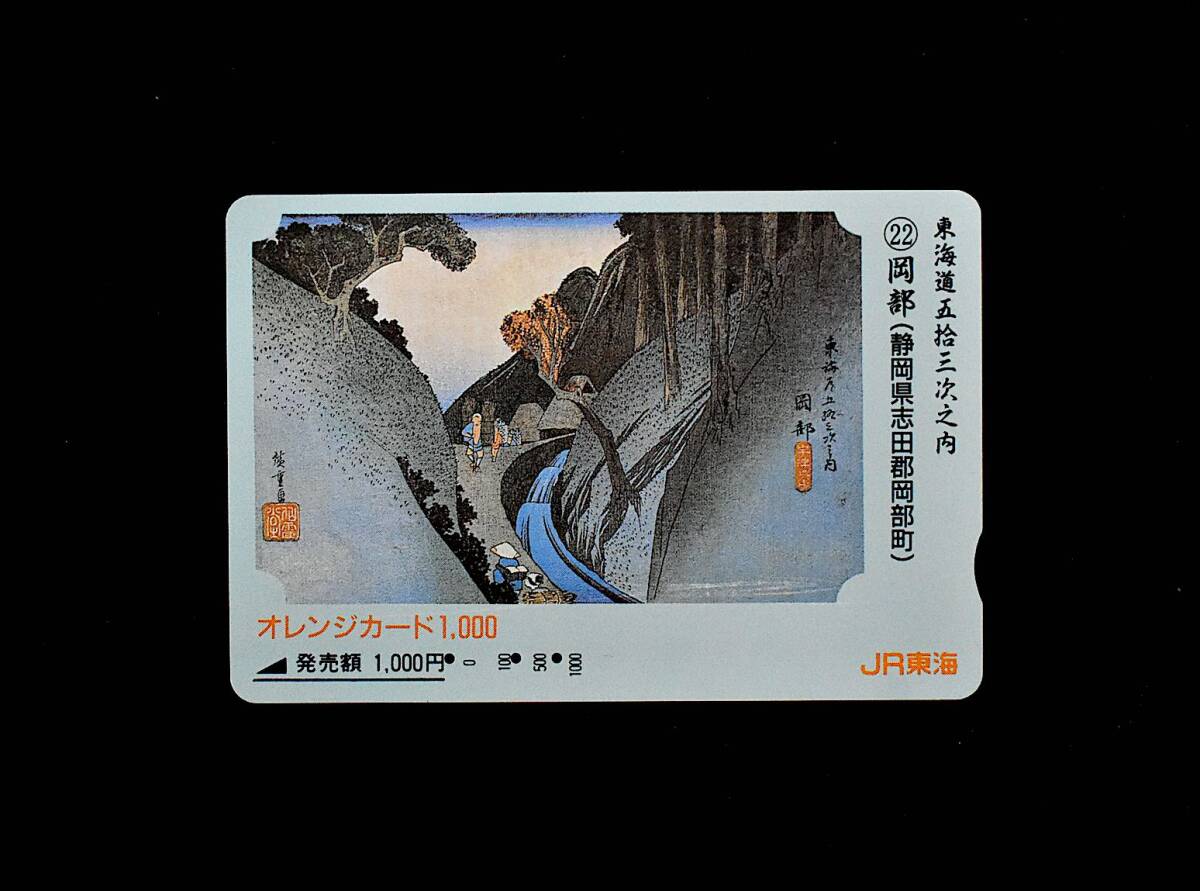 オレンジカード【使用済】JR東海:東海道五拾三次之内 22. 岡部 (静岡県志田郡岡部町)
