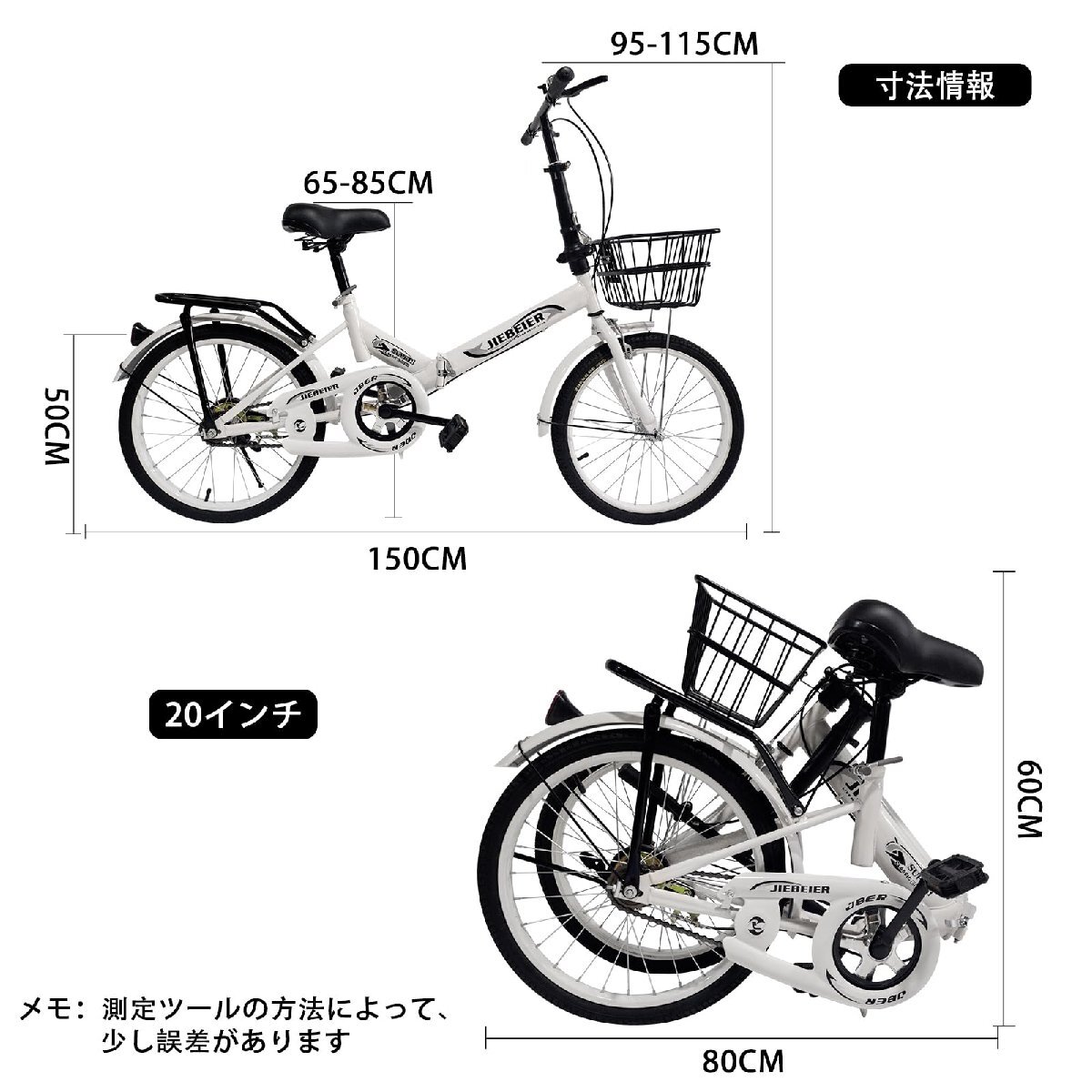 【おすすめ】 20インチ 防滑タイヤ 折りたたみ自転車 JIEBEIER リアキャリア付き 高炭素鋼フレーム 小径車 自転車 軽