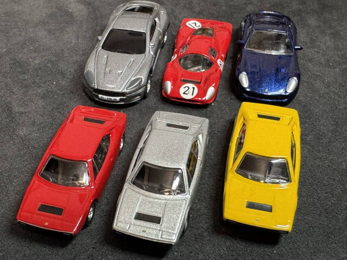 フェラーリ308ディーノGT4=3台、フェラーリ599GTBフィオラノ、フェラーリ330 P4、アストンマーチンDBSの6台セットです。