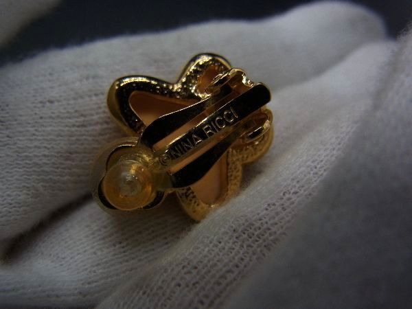 ■美品■ NINA RICCI ニナリッチ フラワー クリップ式 イヤリング アクセサリー レディース ゴールド系×オレンジ系 DH2139