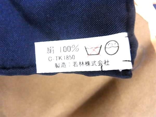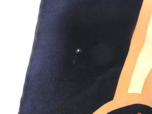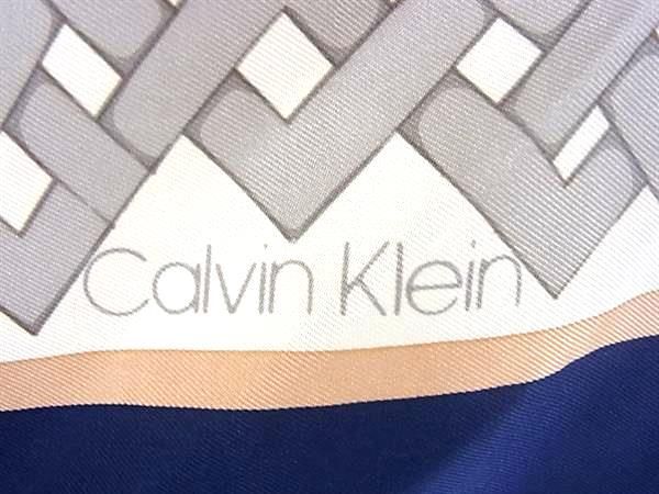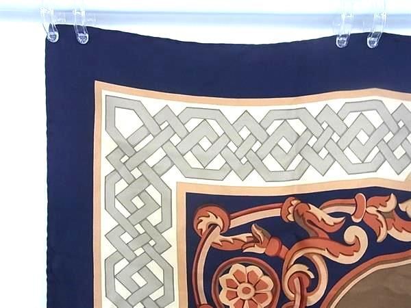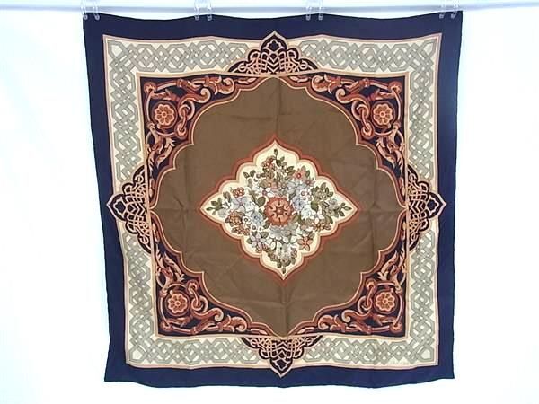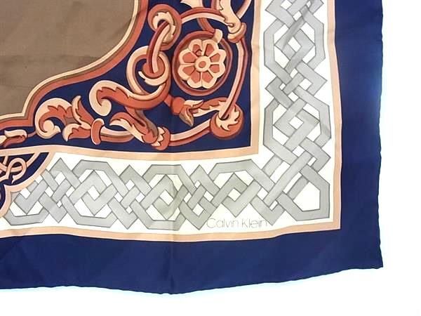 Calvin Klein カルバンクライン シルク100% 花 フラワー 大判 スカーフ ストール ショール ネイビー系×ブラウン系 DE8491